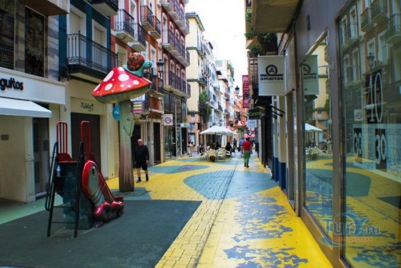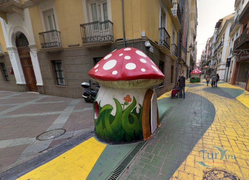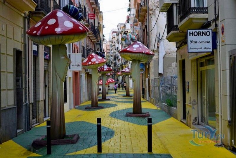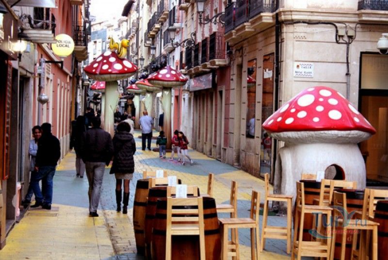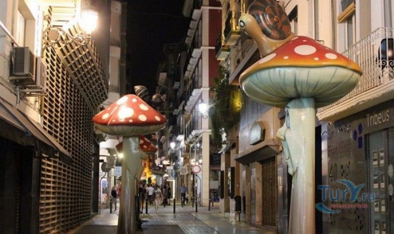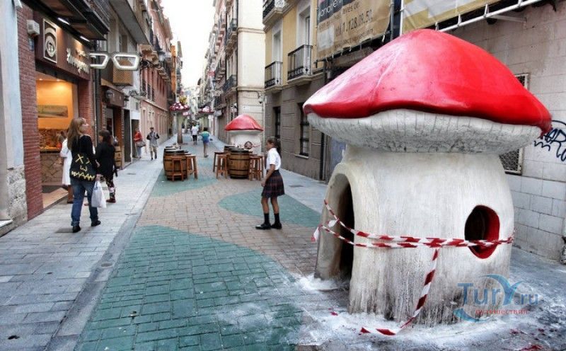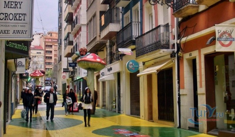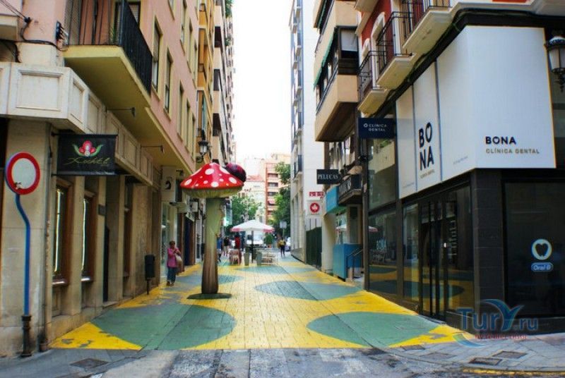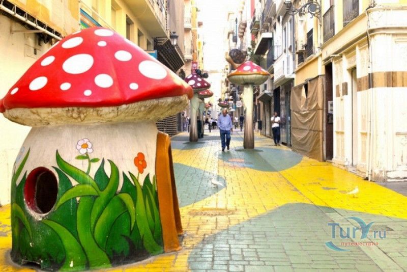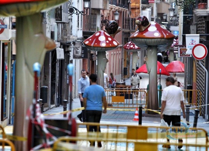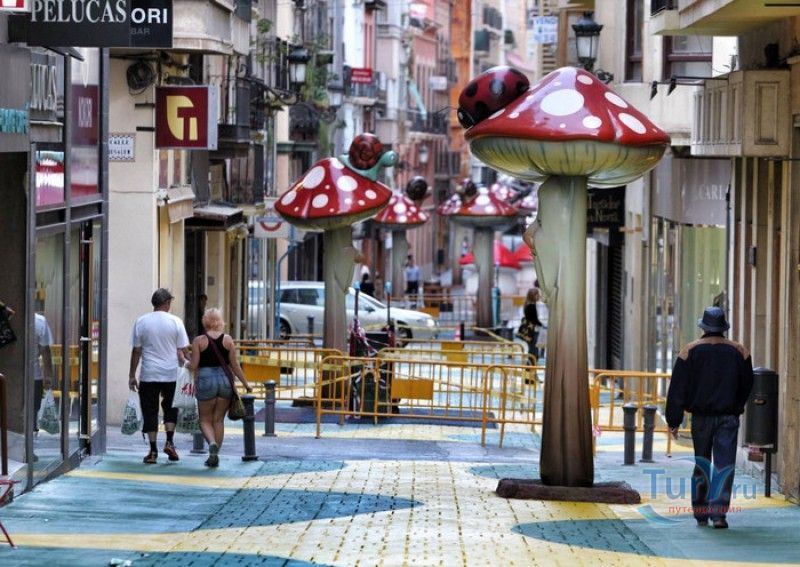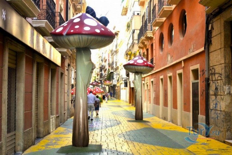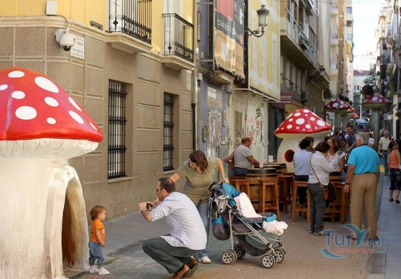 Улица Сан-Франциско - одна из туристических достопримечательностей города Аликанте. Она расположена в самом центре города, между площадями Портал-де-Эльче и Пуэрта-де-Сан-Франциско. Ещё в начале XXI века улица имела очень плохую репутацию, здесь процветали нелегальная торговля, проституция и преступность. Грязную, плохо освещённую улицу обходили стороной не только туристы, но и местные жители. Всё изменилось в 2013 году, когда городские власти Аликанте решили обновить одну из старых и порядком обветшалых центральных улиц, сделав из неё пешеходную зону и один из самых популярных туристических объектов города. Мало было закрыть нелегальные предприятия, искоренить преступность, обеспечить освещение и покрасить фасады домов - необходимо было радикально изменить имидж улицы. По инициативе мэра Аликанте Сонии Кастедо городская казна выделила 60000 евро на проект по созданию на улице Сан-Франциско тематической зоны "Уличные грибы". И уже в начале 2014 года на улице появились гигантские, ярко раскрашенные "мультяшные" мухоморы с улыбающимися лицами, на шляпках которых сидят смешные разноцветные улитки. Тротуар был выкрашен в зелёный и жёлтый цвета, нарисованы детские классики и установлены горки. На улице открылось множество детских магазинов, кафе, кафе-мороженых, ресторанов и кондитерских. С лёгкой руки горожан улица Сан-Франциско получила название улица Грибов (Calle de las Setas), сейчас здесь всегда многолюдно, жители Аликанте и туристы любят посидеть в одном из уличных ресторанчиков, сфотографироваться в обнимку с улыбающимся мухомором и прикупить в одной из кондитерских целый пакет сладостей. Но самые частые гости улицы Грибов - это семьи с маленькими детьми, ведь здесь можно и поиграть, и попробовать вкусное мороженое, и купить обновку для своего малыша.