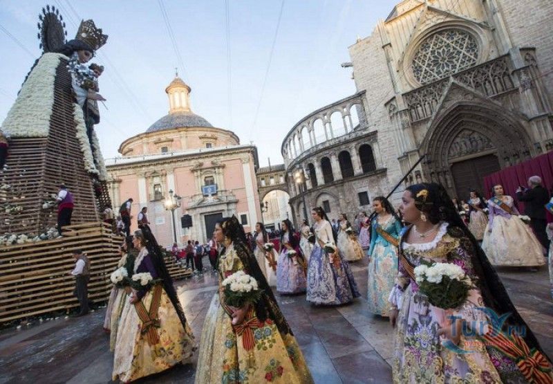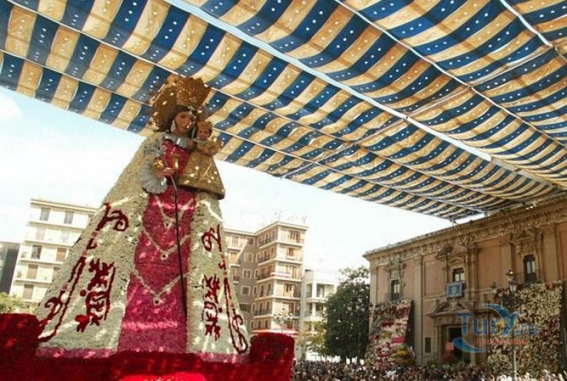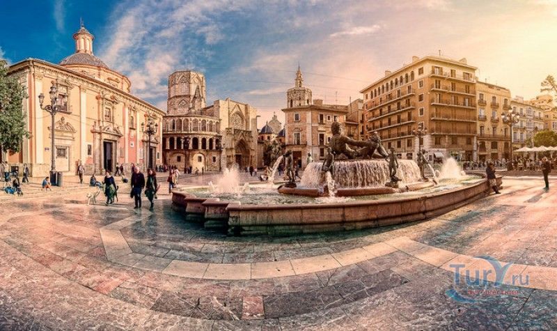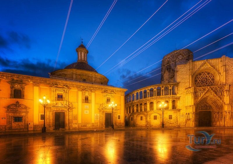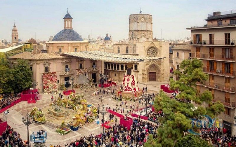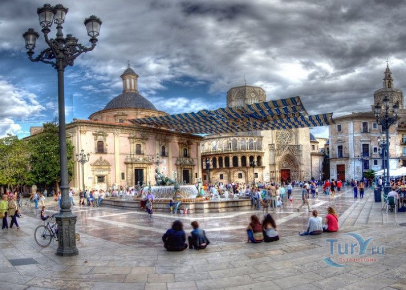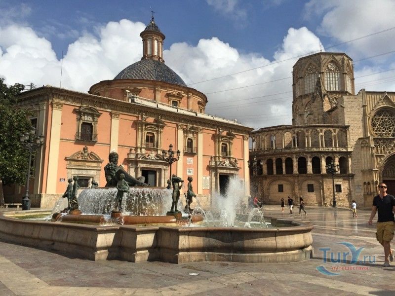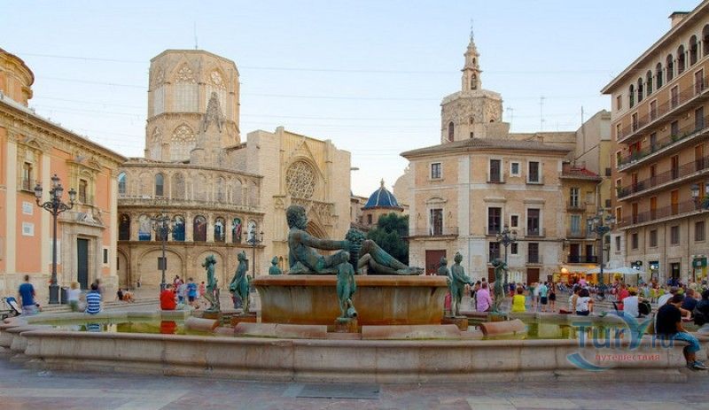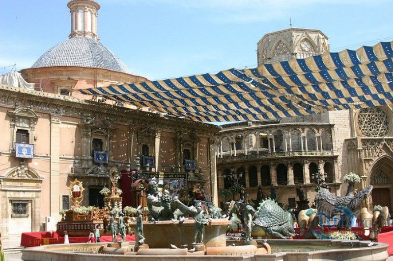 Площадь Святой Девы Марии - одна из главных достопримечательностей Валенсии, расположена в историческом центре города, на месте, где ещё во времена Римской империи, на пересечении двух главных городских дорог, был построен форум. На площади расположены главные исторические здания Валенсии - Кафедральный собор (на площадь Святой Девы выходит западный фасад собора с великолепным готическим порталом Апостольские врата), Базилика Святой Девы Защитницы Обездоленных и Дворец Генералитета (Дом правительства Валенсии). Первым на площади был возведен Валенсийский Кафедральный собор, строительство которого было начато в 1262 году, а завершено лишь в XV веке. В то время площадь носила название Соборная площадь. В 1562-1667 годах на восточной стороне площади было возведено здание Базилики Пресвятой Девы Марии Защитницы Обездоленных в стиле позднего Ренессанса. Базилика была построена специально для хранения чудотворного образа Пресвятой Девы Марии Защитницы Обездоленных - покровительницы города Валенсия. После возведения храма площадь была переименована в площадь Святой Девы Марии. Дворец Генералитета (Palacio de la Generalidad Valenciana), расположенный на северной стороне площади, был построен в 1421 году в стиле поздней готики, а в XVI веке к нему была пристроена башня в стиле Ренессанс. Первоначально во дворце заседала Делегация Генерального королевства Валенсии (специальная комиссия, контролирующая уплату налогов жителями города), затем здание стало штаб-квартирой правительства провинции Валенсия. В 1976 году на площади Святой Девы Марии был установлен фонтан Турия, выполненный по проекту архитектора Мануэля Сильвестра Монтесиноса. Скульптурная композиция фонтана символизирует собой реку Турия, некогда протекавшую через центр города Валенсия, и восемь оросительных каналов реки. Сама река аллегорически изображена в виде мужской фигуры, а каналы - в виде юных дев. В настоящее время площадь Святой Девы Марии является одним из излюбленных мест отдыха жителей и гостей Валенсии, здесь проходят фестивали, праздники, концерты и другие культурные мероприятия, есть много кафе и ресторанов. Кроме того, по многовековой традиции, каждый четверг перед Апостольскими вратами собора проходят заседания Водного суда, занимающегося урегулированием споров между водопользователями оросительных каналов Турии. Ежегодно с 15 по 19 марта, во время фестиваля Фальяс, приуроченного ко дню памяти Святого Иосифа, на площади устанавливается гигантская статуя Пресвятой Девы Марии с Младенцем, мантия которой полностью выполнена из цветов. Традиционно 17 и 18 марта жители города преподносят свой покровительнице цветы, буквально засыпая площадь перед статуей красочными букетами.