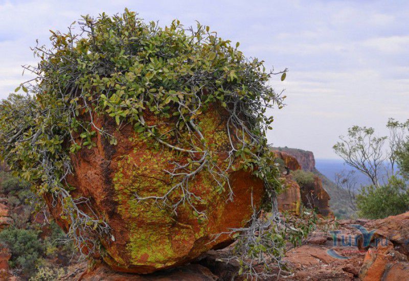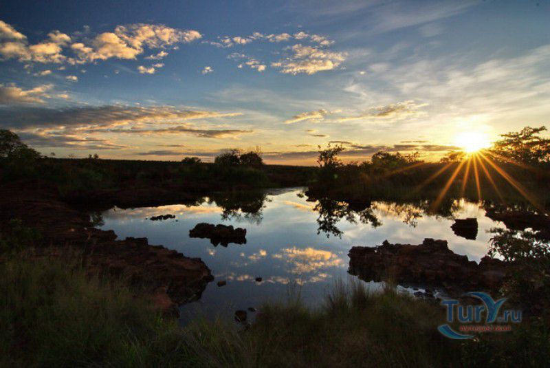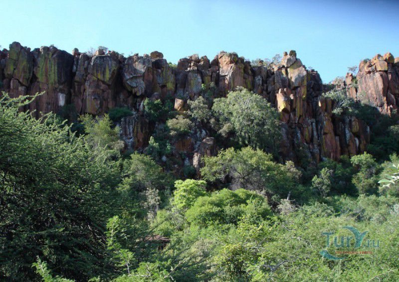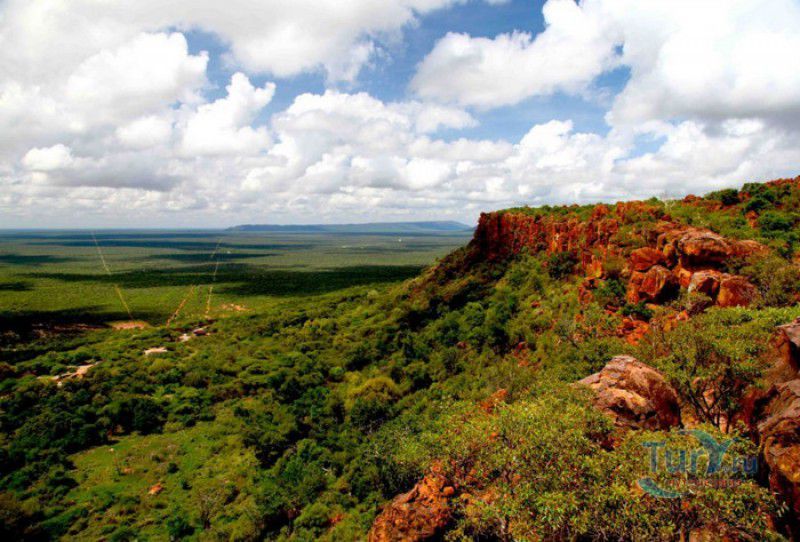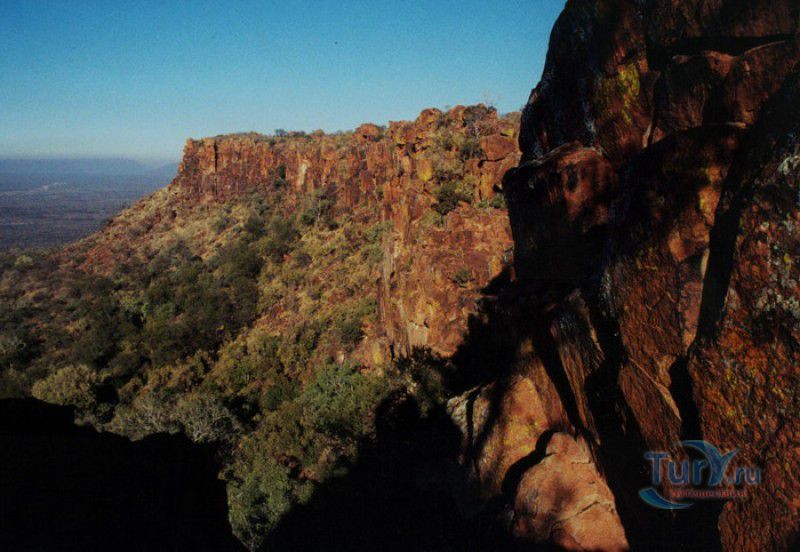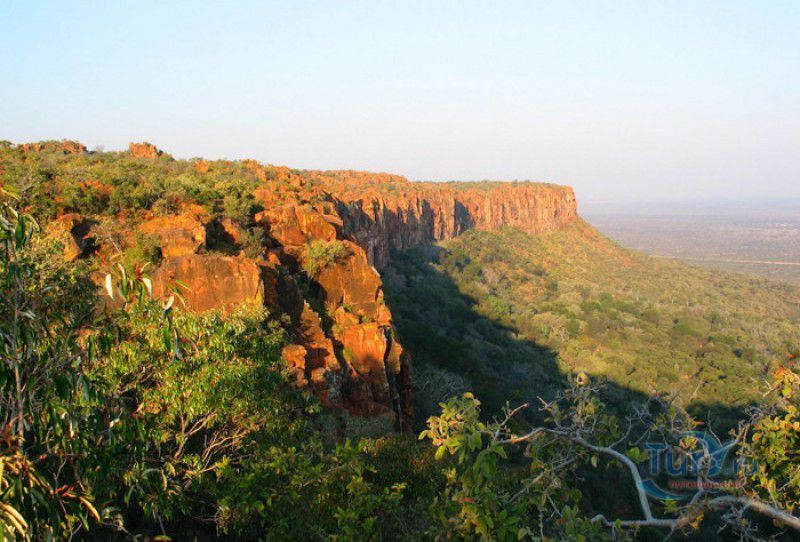 Национальный Парк Плато Ватерберг расположен в центральной части Намибии, на территории скального массива Плато Ватерберг, в 70 километрах к востоку от города Очиваронго. В 1972 году плато Ватерберг и прилегающие к нему территории были объявлены природным заповедником, с общей охраняемой площадью - 405 квадратных километров. Плато возвышается над пустыней Калахари на высоту более 200 метров и является недоступным на большинстве участков - наверх можно подняться только в определенных местах. В 70-х годах XX столетия сюда были перемещены некоторые виды редких и находящихся под угрозой исчезновения животных с целью защиты их от браконьеров и восстановления численности популяции. Программа реинтродукции оказалось успешной, на сегодня в парке обитают около 25 видов млекопитающих - чёрный и белый носороги, леопарды, гепарды, гиены, шакалы, африканская дикая собака, чёрная и лошадиная антилопы, бубал, канна, импала, голубой гну, буйволы, жирафы, каракал, бородавочники, даманы. На плато Ватерберг зарегистрированы более 200 видов птиц, среди которых чёрный орёл, сапсан, капский гриф, турач, длиннокрылый попугай Рюппеля, птица-носорог Ток Монтейра, красноклювый ткач, фиолетовый лесной удод, каменный дрозд, цапли, колпицы и многие другие. Благодаря наличию источников воды у подножия плато и небольших водоёмов на поверхности, растительный мир характеризуется удивительным разнообразием (более 500 видов растений) - здесь встречаются акациевые саванны и лесистые участки, растут огромные фиговые деревья, спатодея (африканское огненное дерево), папоротники, суккуленты, лилейные. Плато Ватерберга часто называют "Затерянным миром", оно образовалось около 850 миллионов лет назад, а 200 миллионов лет назад здесь бродили динозавры, о чём свидетельствуют найденные их окаменевшие следы. На плато обнаружены наскальные рисунки, возраст которых - несколько тысяч лет, их оставила народность сан, издавна жившая в этих местах (небольшое племя сан проживало на плато вплоть до 60-х годов XX века). На плато Ватерберг в 1904 году состоялась одна из самых кровопролитных битв в истории Намибии - местное племя гереро сражалось здесь с немецкими колониальными войсками. В этом сражении погибла значительная часть племени, ещё тысячи аборигенов погибли от обезвоживания во время отступления через пустыню Калахари. Рядом с лагерем Bernabe De La Bat находится военное кладбище с могилами немецких солдат. Для посетителей в парке разработаны несколько увлекательных маршрутов, оборудованы смотровые площадки, можно отправиться в пеший поход или в сафари на джипах (в сопровождении опытных проводников парка). На границах парка есть множество кемпингов, лоджей и баз отдыха.