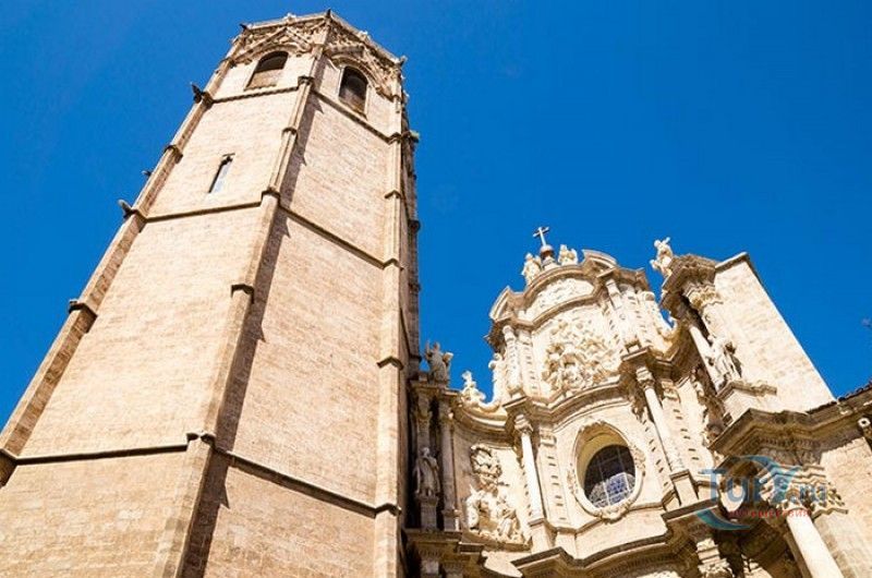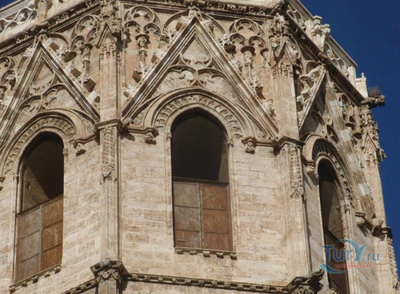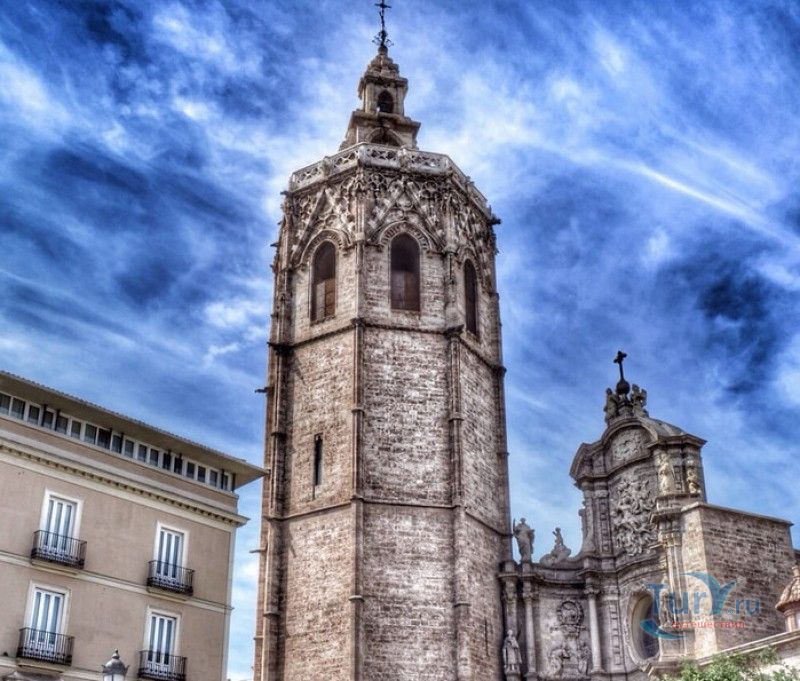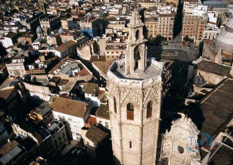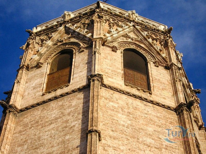 Колокольня Мигелете (Микалет) - символ города Валенсия, является колокольней Кафедрального собора Валенсии. Башня была возведена в 1381-1425 годах рядом с северным фасадом храма, выходящим на площадь Королевы (Plaza de la Reina). За время строительства башни сменилось несколько архитекторов, руководивших работами - начинал строительство колокольни испанский зодчий Андреу Хулиа, за ним последовали Хосе Франк и Пере Балагер, завершал строительство Мартин Лобет. Колокольня Мигелете построена в стиле валенсийской готики, она имеет восьмиугольную форму, тело башни делится на четыре уровня, разделённых тонкими молдингами, прочность сооружению придают вертикальные контрфорсы. Верхний уровень башни украшен ажурными стрельчатыми окнами и лепниной, венчает колокольню звонница, построенная в 1660-1736 годах (до этого колокол удерживала конструкция из деревянных балок). Высота колокольни - 50,85 метров (вместе со звонницей - 63 метра), высота башни в точности совпадает с её периметром. На верхнем этаже колокольни Мигелете, на который ведёт узкая винтовая лестница из 207 ступеней, находится открытая терраса. Первоначально она была ограждена готической ажурной балюстрадой, разрушенной в XVIII веке, - сначала её заменили на деревянные перила, затем, в XIX веке, на металлическое ограждение, и только в 1983 году каменная балюстрада была восстановлена из сохранившихся элементов ограждения, построенного ещё в 1425 году архитектором Мартином Лобетом. В звоннице колокольни установлены 12 колоколов, старейший из них датируется 1305 годом, самый новый - 1735 годом. Самый большой колокол, освящённый в честь Святого Михаила (El Micalet), был отлит в 1532 году и весит семь с половиной тонн. По имени этого колокола, отбивающего время, в XVI веке колокольня Мигелете и была названа - раньше, чтобы отличить её от другой башни собора, выполненной в романском стиле и расположенной с восточной стороны храма, Мигелете называли Новой колокольней. За свою долгую историю колокольня выполняла и гражданские функции - она использовалась в качестве дозорной башни, маяка и площадки для праздничного освещения и запуска фейерверков. Сегодня все желающие могут подняться на смотровую площадку Мигелете, с которой открывается великолепный панорамный вид на Валенсию и окрестности города.