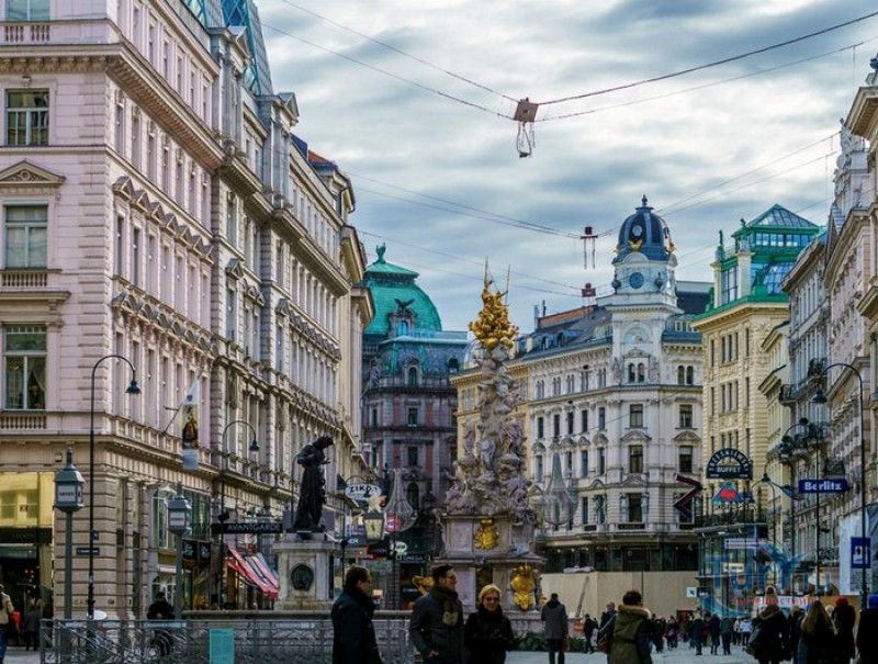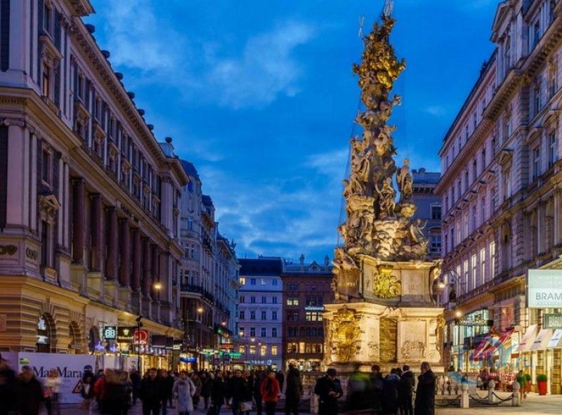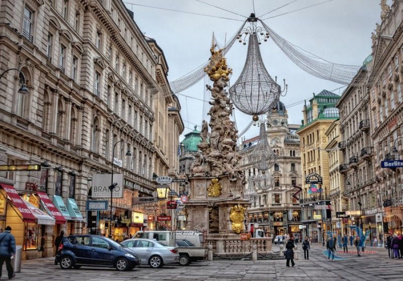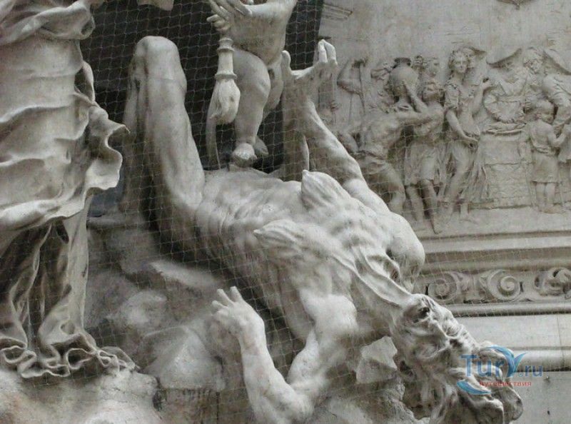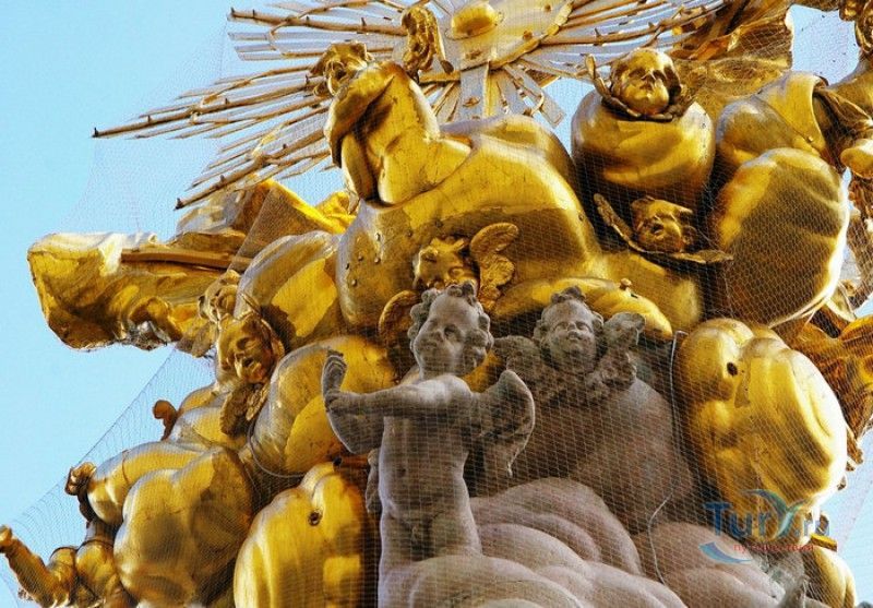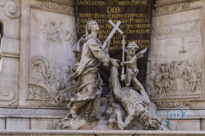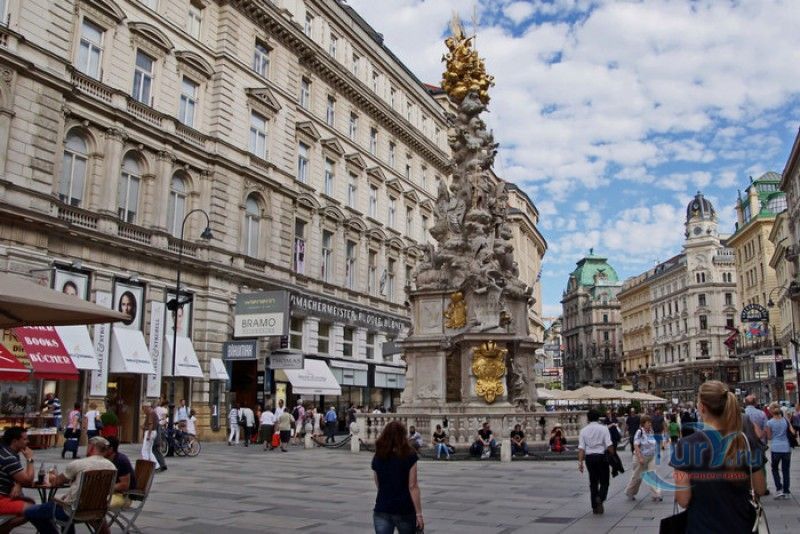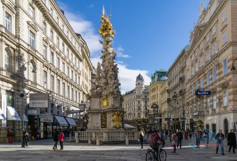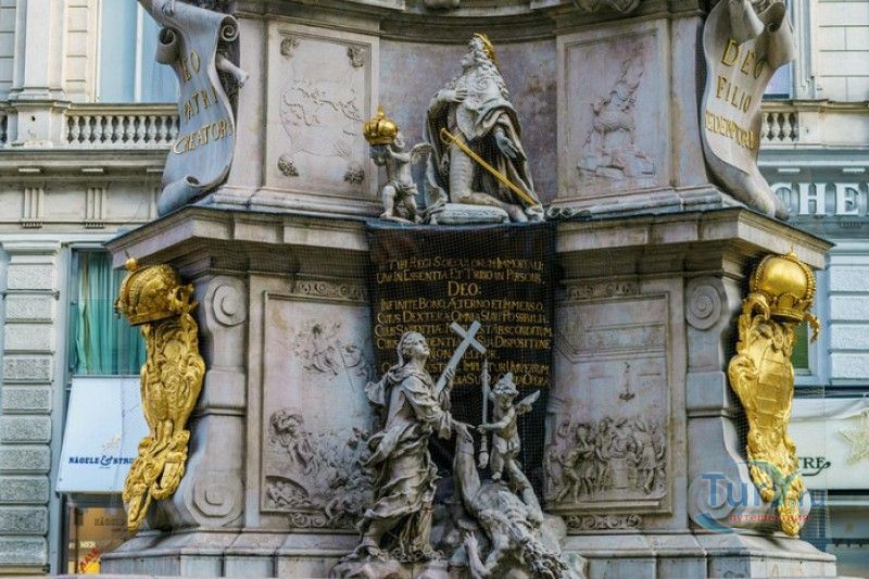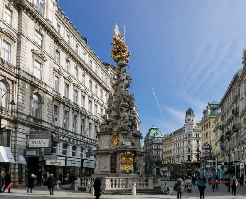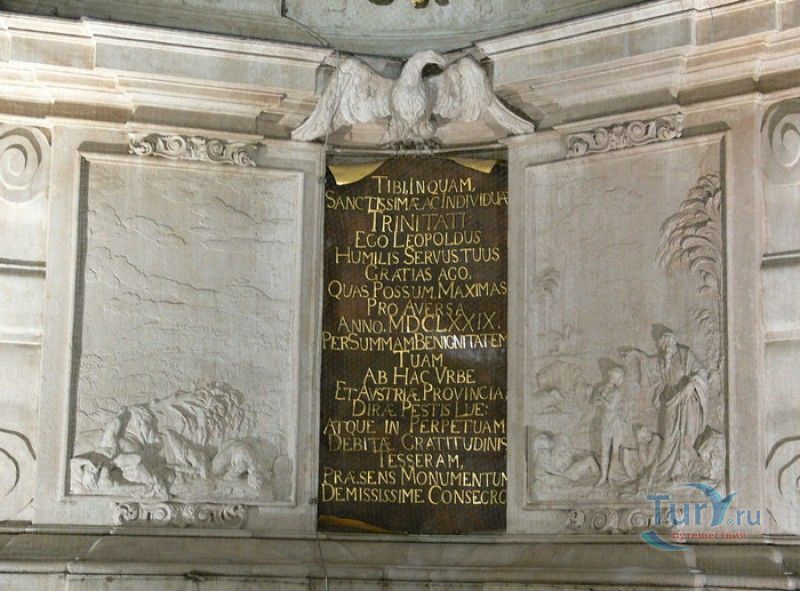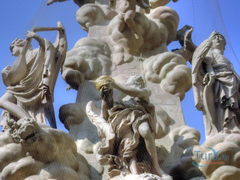 Чумная Колонна (Колонна Святой Троицы) в Вене - один из самых известных скульптурных памятников в стиле Высокого барокко в столице Австрии, она расположена в историческом центре города, на улице Грабен. История колонны связана с Великой эпидемией чумы в Вене - одной из самых страшных эпидемий бубонной чумы не только в Австрии, но и во всей Европе, свирепствовавшей в Вене в 1679 году. Эпидемия, которую современники окрестили "венской смертью", унесла жизни более 76 000 горожан. В городе, погибающем от чумы, заботу о больных взяло на себя братство Святой Троицы, организовавшее в Вене специальные больницы для детей и взрослых. Медицина того времени "лечила" чуму с помощью рвотных средств, кровопускания и сомнительных мазей, реально победить эпидемию стало возможно только после организации вывоза с улиц города трупов жертв чумы и сжигания их за пределами Вены. В ознаменование победы над эпидемией чумы в 1679 году в Вене был установлен чумной столб - такое обещание дал своему народу император Леопольд I, покинувший столицу в самом начале эпидемии. Первоначально столб был выполнен из дерева по проекту скульптора Иоганна Фрууерта. Колонна была украшена символами девяти ангельских хоров и увенчана скульптурной группой, изображающей Святую Троицу (обычно чумные столбы посвящали Деве Марии, но венская колонна была установлена в честь Святой Троицы). В 1682 году было решено заменить деревянный столб на мраморный, проект нового памятника был заказан скульптору Матиасу Раухмюллеру, после смерти которого проектирование и строительство Чумной колонны курировал Пауль Штрудель. Первый камень в фундамент будущего памятника был заложен 30 июня 1687 года лично Леопольдом I, а 29 октября 1693 года Чумная колонна Святой Троицы была торжественно открыта. Колонна представляет собой сложную иконографическую композицию, в основе которой лежит идея победы над чумой благодаря смиренным молитвам императора Леопольда I. На колонне размещены три скульптуры императора Лепольда I - в верхней части пьедестала, где монарх изображён в виде молящегося Богу заступника, среди фигур ангелов - в качестве посредника между Богом и людьми, и в самой верхней части колонны. На боковых поверхностях основания колонны размещены шесть рельефов, гербы Австрии, Венгрии и Чехии, а также таблички с текстами молитв на латинском зыке. Над пьедесталом расположено пирамидальное "облако" со статуями ангелов, венчает колонну скульптурная композиция, изображающая Святую Троицу. За свою более чем трёхвековую историю Чумная колонна ни разу не "покидала" своего места на улице Грабен, избежала разрушений и каких-либо существенных повреждений. В 1980-1981 годах Колонна Святой Троицы была полностью отреставрирована.