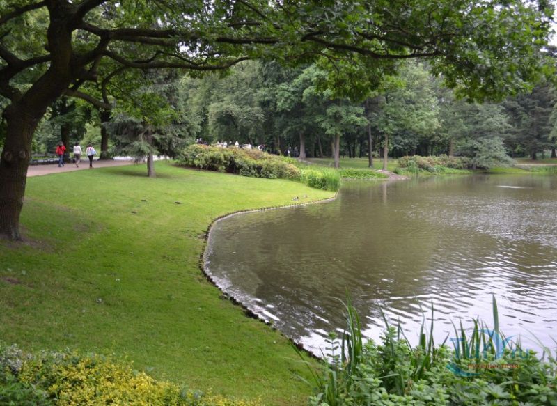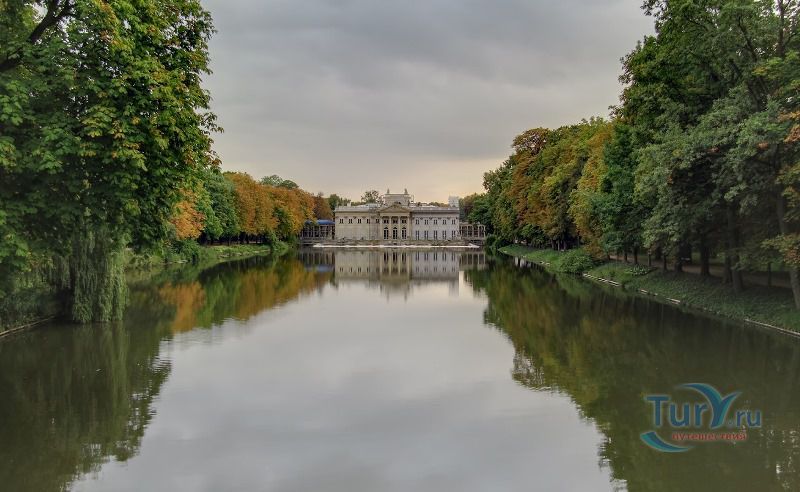 Дворцово-Парковый Комплекс Королевские Лазенки состоит из трех разных парков, которые стилистически отличаются друг от друга и были созданы в разное время: Королевский парк, Бельведерский парк и парк в стиле модерн. Территория комплекса занимает площадь 78 гектаров. По соседству с ними расположены павильоны 18-19 веков и парковые дворики, а также скульптуры 18-20 веков. В состав Дворцово-Паркового Комплекса входят старинные здания конца 18 века, кождое из которых имеет свое предназначение и название: Дворец на воде, Белый домик, Большой флигель Подхоронжувка, Охотничий дворец, Старая оранжерея с придворным Театром Станислава. Там же размещена глиптотека, собрание копий античных скульптур, закупленных в Западной Европе и доступных для учеников художественных школ. Дворец на воде является летней резиденцией последнего короля Польши Станислава Августа и представляет собой виллу-музей, в котором представлена экспозиция королевской коллекции живописи 17-18 веков и скульптуры. Король оставил как бы свое духовное завещание будущим поколениям. Белый домик представляет собой павильон, полный звуков камерного характера и гармонично вписывающийся в окружающий пейзаж. Расположен Белый домик рядом с Королевским Променадом. Перед южным фасадом здания стоят солнечные часы в форме преклоненного сатира, который держит на своей спине мраморный щит с позолоченными цифрами и бронзовыми стрелками. Большой флигель Подхоронжувка расположен рядом с Дворцом на воде и Охотничьим дворцом и имеет форму прямоугольной подковы. По инициативе короля здание построено в классическом стиле и предназначалось для проживания. Во времена короля из Большого флигеля во Дворец на воде проходил коридор, по которому приносили блюда на королевский стол. Позже коридор был разобран. В 1822 году в этом здании разместилась школа пехотинских офицеров. Отсюда и происходит название этого места. Это здание примечательно тем, что именно здесь Петр Высоцкий призвал подхорунжих к оружию, начав тем самым Ноябрьское восстание. Охотничий дворец построен в стиле раннего классицизма в форме квадрата с увеличивающими его боковыми павильонами и двухэтажными башенками, соединенными с главным корпусом. На центральном фронтоне хорошо видна ниша с фигурами Зефира и Флоры. Особого внимания заслуживает французская женская дорожная библиотека конца 18 века, содержащая 210 миниатюрных фолиантов в кожаных переплетах. Старая оранжерея находится в западной части парка и построена в классическом стиле в форме прямоугольной подковы. Используется оранжерея для сохранения экзотических деревьев и кустарников в зимнее время, а летом растения выставляются в парке для его украшения. В восточном крыле Старой оранжереи расположен Театр Станислава, который имеет богатые театральные декорации, показывающие изысканный вкус Станислава Августа. Это один из немногих подлинных придворных театров 18 века, которые сохранились до наших дней. Внимание посетителей привлекают женские фигуры из искусственного мрамора, одетые в античные одежды и держащие в руках деревянные позолоченные подсвечники на 6 свечей. Театральный зал выдержан в кремовых, золотых, голубых и бежевых цветах. В здании Старой оранжереи находится коллекция гипсовых копий античных скульптур, собранных королем Станиславом Августом, 