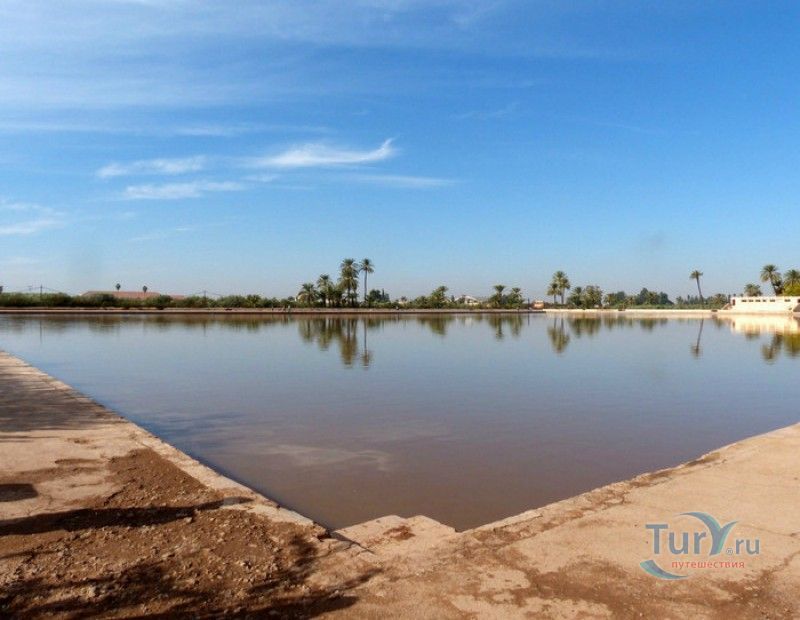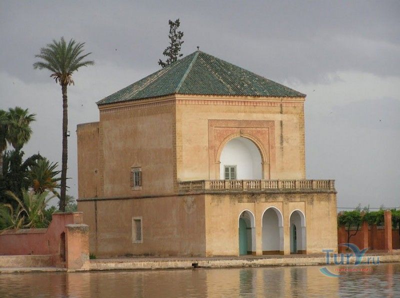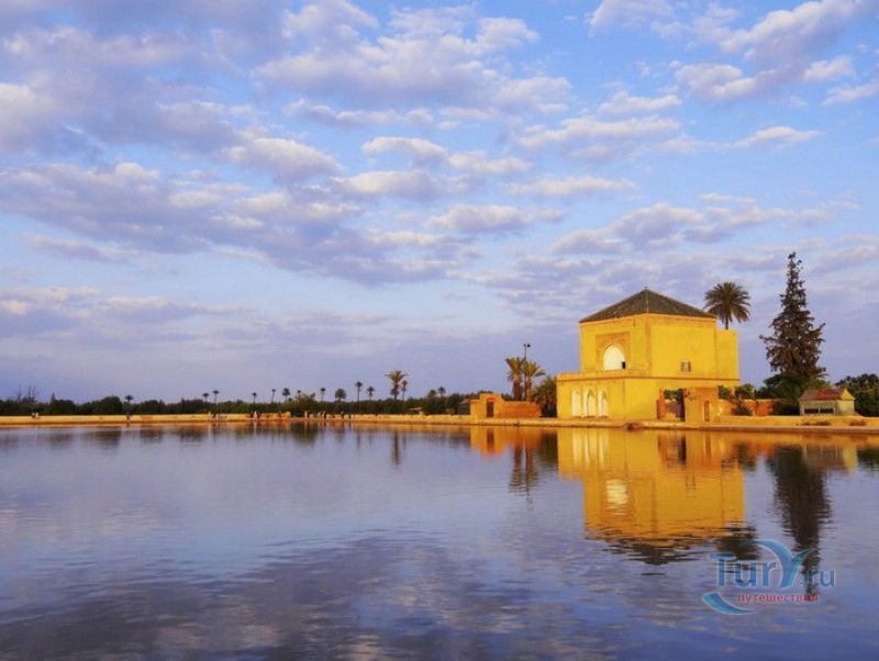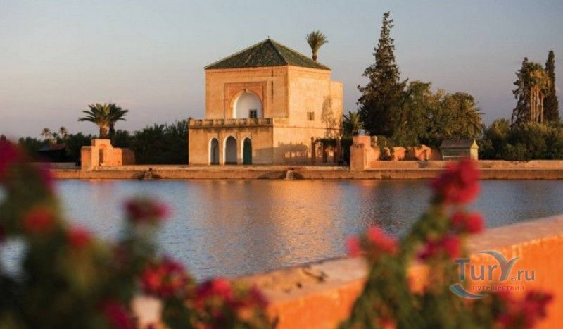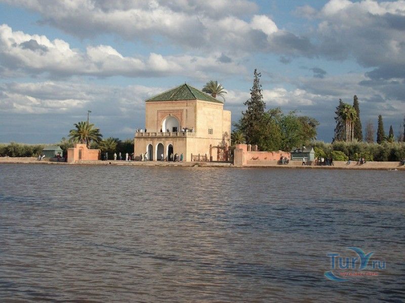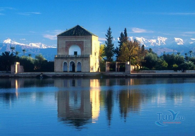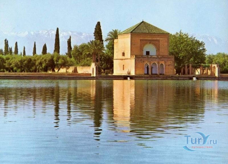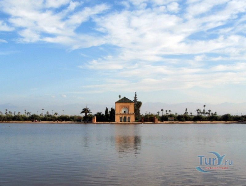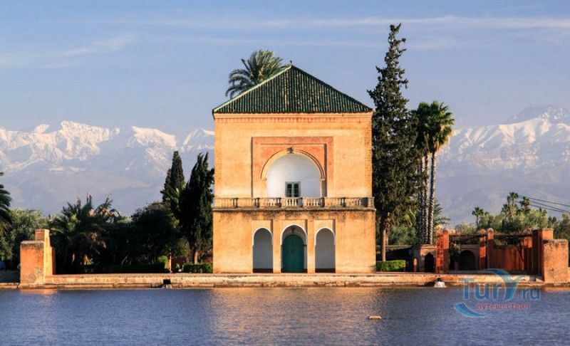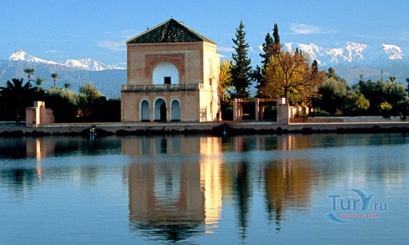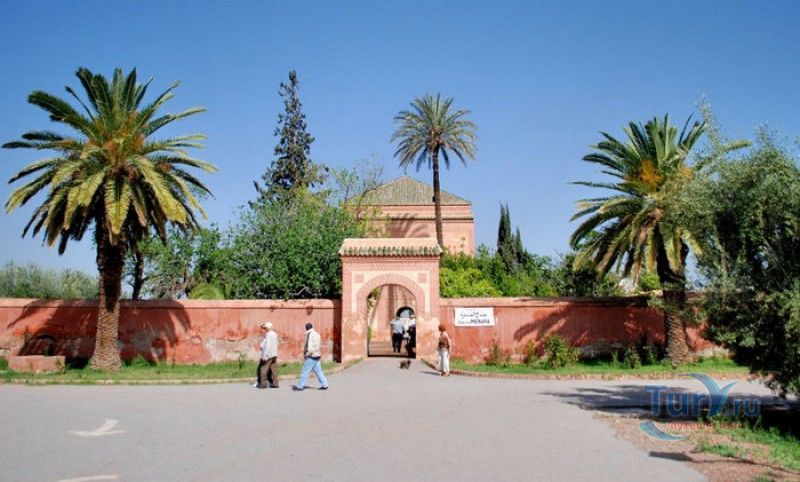 Сады Менара - самый большой общественный парк в Марракеше и одна из его главных достопримечательностей. Сады Менара, занимающие площадь почти 100 гектаров, расположены у подножия Атласских гор, к западу от центра Марракеша, в 45 минутах ходьбы от центральной площади города Джемаа эль-Фна и в 3 километрах от мечети Кутубия. Сады имеют очень давнюю историю, они были заложены в 1147 году по приказу халифа Абд аль-Мумина, основателя династии Альмохадов. Посреди сада, по велению правителя Марокко, был вырыт большой бассейн, служивший резервуаром для талых вод, поступающих в него с заснеженных вершин Атласских гор. С этой целью от Атласских гор к бассейну была проложена подземная водосборная система протяжённостью 30 километров, вода же, поступающая в бассейн, использовалась для орошения садов. В садах, расположенных вокруг искусственного водоёма, были высажены более 40 сортов оливковых деревьев (всего около 30 000 деревьев), пальмы и фруктовые деревья, разбиты цветники. Вся территория сада окружена высокой глинобитной стеной, между деревьями проложены тенистые аллеи и пешеходные дорожки. В XVI веке, во время правления династии Саадитов, на берегу бассейна был построен небольшой двухэтажный павильон с зелёной пирамидальной крышей, напоминающей своей формой египетские пирамиды. По названию этого павильона (Менара) сады и получили своё название. В 1869 году павильон был перестроен султаном Мулаем Абдеррахманом, который часто проводил здесь время в жаркие летние месяцы. Сады Менара издавна были излюбленным местом отдыха марокканских правителей, с ними связано множество легенд и историй. Говорят, что один из султанов из династии Альморавидов развлекался здесь со своими наложницами. На рассвете наложницу, с которой он провёл ночь, ждала страшная участь - её бросали в пруд. По другой легенде, в Садах Менара одним из правителей Марокко были спрятаны несметные сокровища, которые он собрал во время многочисленных военных кампаний. Кроме того, во времена правления Альмохадов в бассейне учили плавать солдат марокканской армии, готовя их к походу в Андалусию, чтобы попасть в которую необходимо было пересечь на судах Средиземное море. В наши дни Сады Менара - любимое место отдыха жителей и гостей Марракеша. В тени деревьев можно укрыться от палящего солнца, отдохнуть от городского шума и полюбоваться сказочными видами заснеженных вершин Атласских гор. Поднявшись на балкон павильона, можно увидеть минарет мечети Кутубия и её центральную аллею. В Садах Менара часто проводятся концерты и фестивали, в павильоне устраиваются выставки и вернисажи.