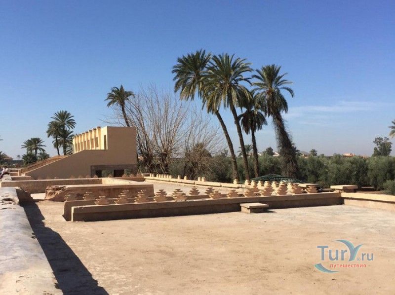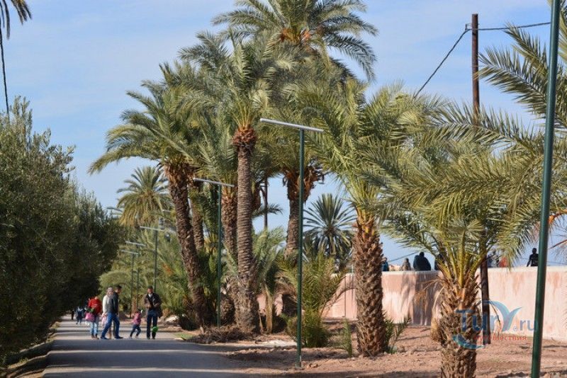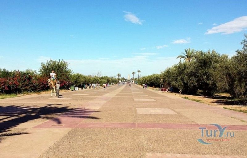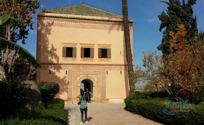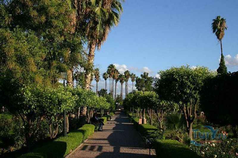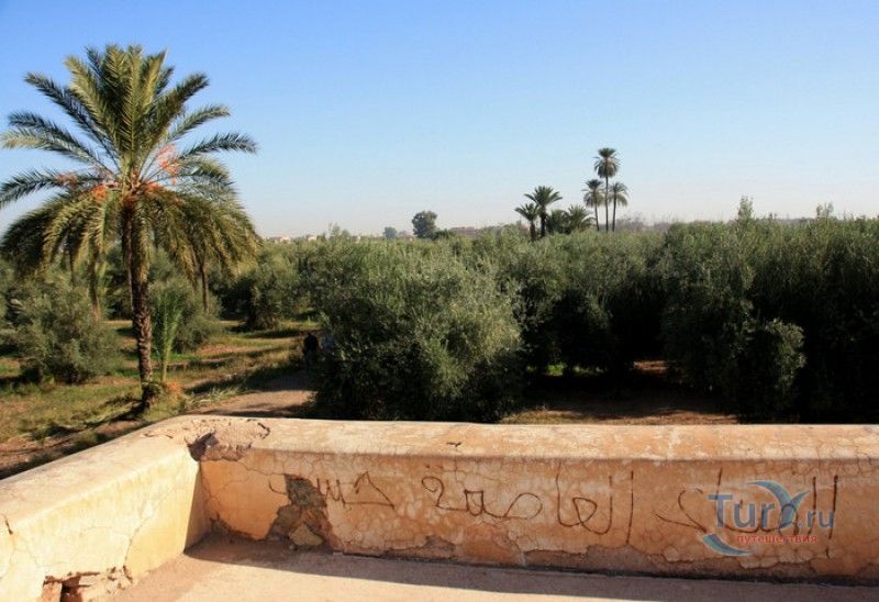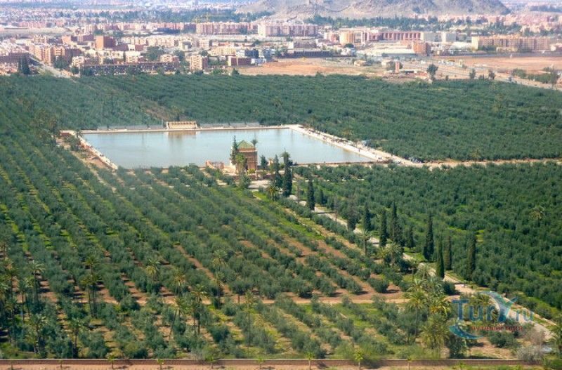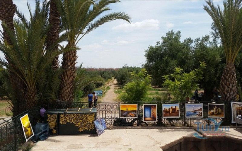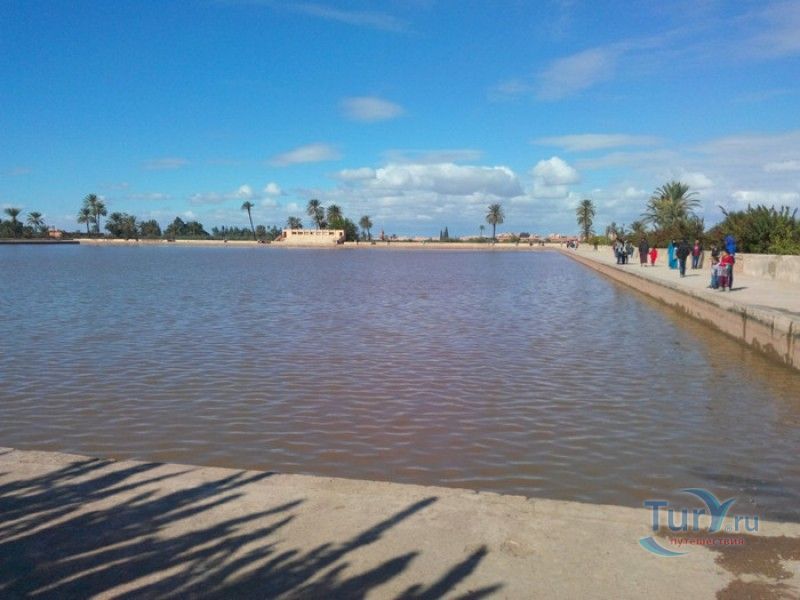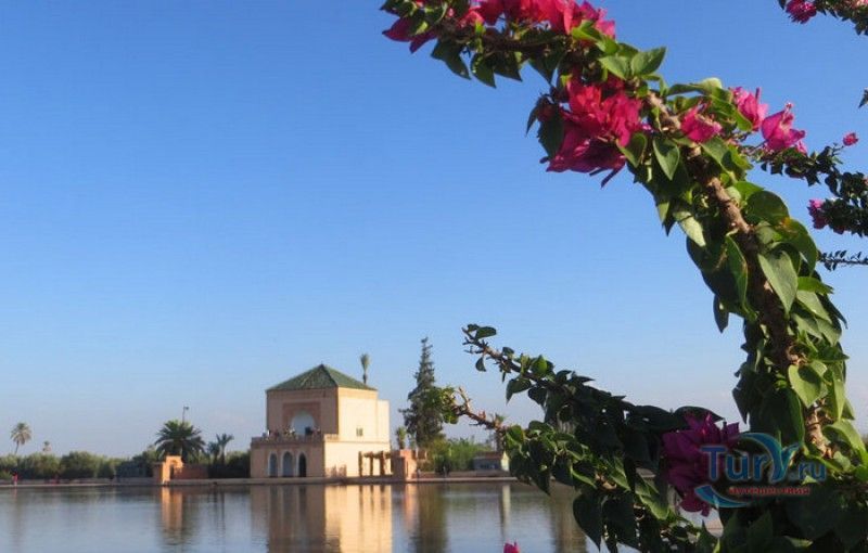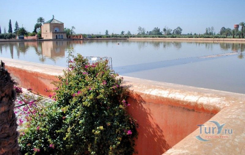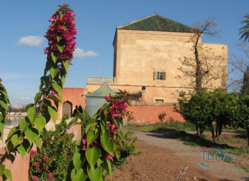 Сады Менара - самый большой общественный парк в Марракеше и одна из его главных достопримечательностей. Сады Менара, занимающие площадь почти 100 гектаров, расположены у подножия Атласских гор, к западу от центра Марракеша, в 45 минутах ходьбы от центральной площади города Джемаа эль-Фна и в 3 километрах от мечети Кутубия. Сады имеют очень давнюю историю, они были заложены в 1147 году по приказу халифа Абд аль-Мумина, основателя династии Альмохадов. Посреди сада, по велению правителя Марокко, был вырыт большой бассейн, служивший резервуаром для талых вод, поступающих в него с заснеженных вершин Атласских гор. С этой целью от Атласских гор к бассейну была проложена подземная водосборная система протяжённостью 30 километров, вода же, поступающая в бассейн, использовалась для орошения садов. В садах, расположенных вокруг искусственного водоёма, были высажены более 40 сортов оливковых деревьев (всего около 30 000 деревьев), пальмы и фруктовые деревья, разбиты цветники. Вся территория сада окружена высокой глинобитной стеной, между деревьями проложены тенистые аллеи и пешеходные дорожки. В XVI веке, во время правления династии Саадитов, на берегу бассейна был построен небольшой двухэтажный павильон с зелёной пирамидальной крышей, напоминающей своей формой египетские пирамиды. По названию этого павильона (Менара) сады и получили своё название. В 1869 году павильон был перестроен султаном Мулаем Абдеррахманом, который часто проводил здесь время в жаркие летние месяцы. Сады Менара издавна были излюбленным местом отдыха марокканских правителей, с ними связано множество легенд и историй. Говорят, что один из султанов из династии Альморавидов развлекался здесь со своими наложницами. На рассвете наложницу, с которой он провёл ночь, ждала страшная участь - её бросали в пруд. По другой легенде, в Садах Менара одним из правителей Марокко были спрятаны несметные сокровища, которые он собрал во время многочисленных военных кампаний. Кроме того, во времена правления Альмохадов в бассейне учили плавать солдат марокканской армии, готовя их к походу в Андалусию, чтобы попасть в которую необходимо было пересечь на судах Средиземное море. В наши дни Сады Менара - любимое место отдыха жителей и гостей Марракеша. В тени деревьев можно укрыться от палящего солнца, отдохнуть от городского шума и полюбоваться сказочными видами заснеженных вершин Атласских гор. Поднявшись на балкон павильона, можно увидеть минарет мечети Кутубия и её центральную аллею. В Садах Менара часто проводятся концерты и фестивали, в павильоне устраиваются выставки и вернисажи.