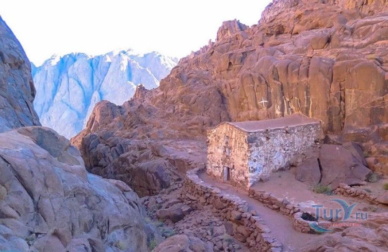 Часовня Пресвятой Богородицы Экономиссы расположена на половине пути к вершине горы Синай от монастыря Святой Екатерины, рядом с Лестницей Покаяния (тропой, состоящей из 3750 ступеней, по которой на вершину горы традиционно поднимаются паломники и монахи). Небольшая византийская часовня на горе Моисея (одно из названий горы Синай) была построена в VI веке управителем монастыря Святой Екатерины в честь Пресвятой Богородицы Экономиссы (Домостроительницы). По легенде, часовня стоит на том самом месте, где Богородица явилась монаху. Существует две версии произошедшего здесь чуда. Согласно первой легенде, когда запасы продовольствия в монастыре закончились, и монахи, долгое время страдавшие от голода, решили покинуть обитель, управитель монастыря поднялся на гору Синай и обратился к Божией Матери с молитвой о помощи. И чудо произошло - Богородица явилась монаху и сказала, что запасы монастыря больше никогда не оскудеют ("Иди, и обрящещь верблюдов, которые принесут вам пищу"). Когда монах спустился с горы, к монастырю уже подходил караван верблюдов с продовольствием. По другой версии, Богородица явилась монаху в ответ на его мольбу о помощи спасти монастырь от нашествия полчищ насекомых (муравьев, мух и блох), портивших продовольственные запасы и нещадно кусавших святых отцов. Дева Мария пообещала избавить обитель от напасти, и вскоре насекомые исчезли. Говорят, что и в наши дни на территории монастыря нет мух, ос, шершней и блох. В память об этом чуде, явлении Пресвятой Богородицы, и была возведена часовня - прямоугольное в плане здание, вплотную примыкающее к скале.