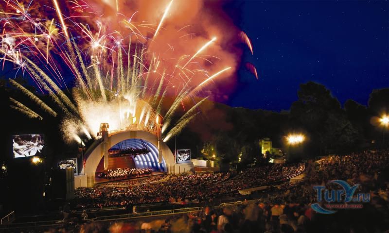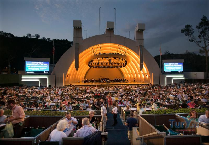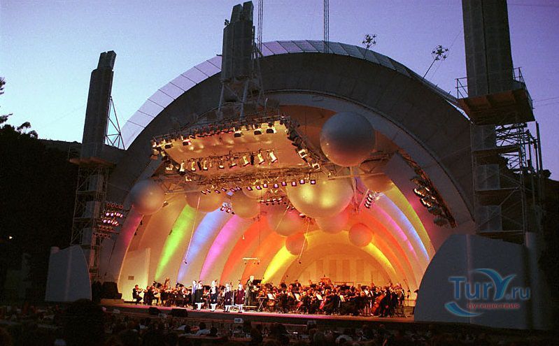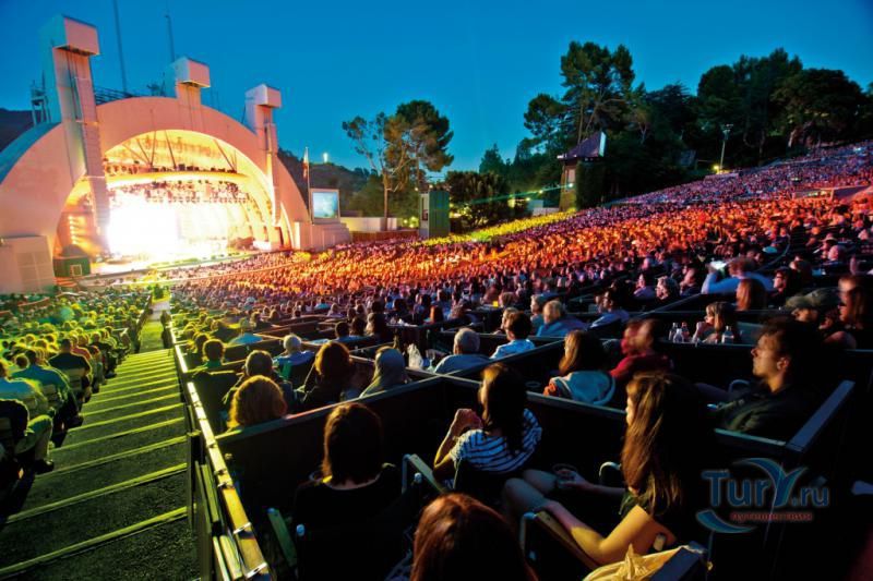 Голливудская Чаша - это амфитеатр с удивительной естественной акустикой, рассчитанный на 20 тысяч зрителей. Место было открыто Эллисом Ридом, который имел обыкновение приходить в эту местность со своим отцом. Перекликаясь друг с другом, они однажды были поражены акустикой чаши, образованной 2 холмами. В 1916 году здесь появилась первая сцена и деревянные лавки для зрителей. Благодаря новому архитектурному проекту Ллойда Уорайта, концертный зал под открытым небом был перестроен, в Лос-Анджелесе появился первый концертный зал – амфитеатр Hollywood Bowl. Среди грандиозных концертов с именами участников, чей талант потряс мир: легендарные The Beatles, Элтон Джон, Боб Дилан и многие оперные звезды.
