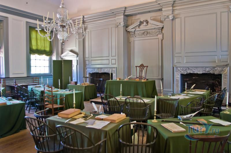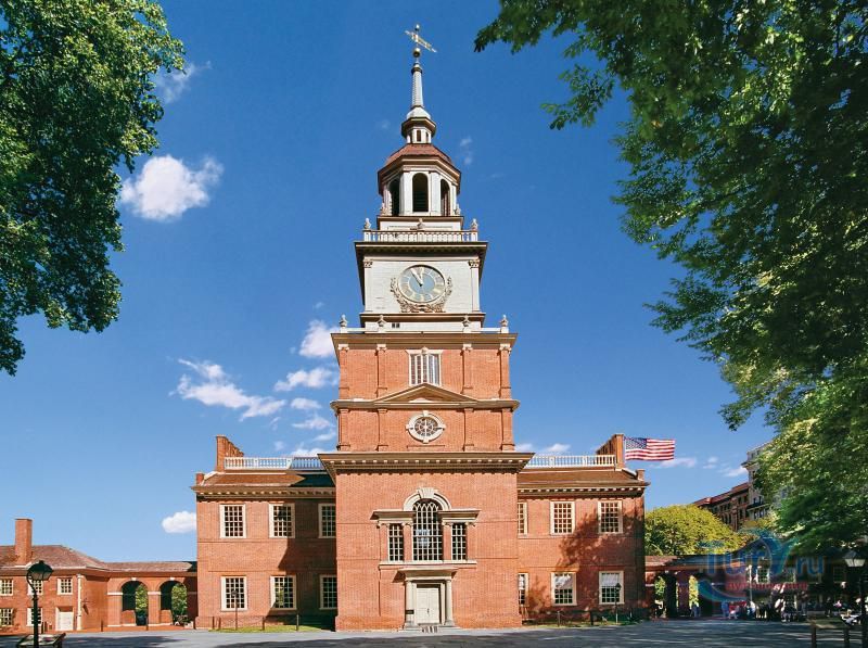 Independence Hall был построен в 1753 году и назывался тогда Pennsylvania State House. В те времена это было самое претенциозное здание во всех тринадцати колониях, оно было и остается национальным символом. Именно здесь была подписана знаменитая американская Декларация Независимости. В обсуждении статей декларации принимали участие 12 делегаций от 13 колоний. Председателем совета был Президент Джордж Вашингтон. Само обсуждение продолжалось с мая по сентябрь 1787 года. В итоге была создана декларация, состоящая из преамбулы и семи статей, которую подписали все 12 делегаций, а в марте 1789 года, после ратификации декларации последним штатом, Нью Хемпширом, она вступила в силу.