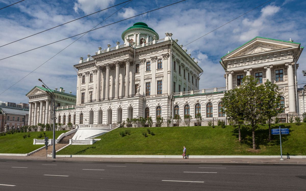 Впечатляющий вид здания вызван отчасти местом его постройки. Пашков дом стоит на высоком Ваганьковском холме, как бы продолжая линию его подъёма, на открытом углу двух спускающихся улиц. Главный фасад ориентирован на солнечную сторону. По отношению к улице, а также к въезду с переулка, особняк поставлен не по прямой улице, а несколько скошено. Благодаря этому он лучше воспринимается с боковых, более далёких ракурсных точек зрения.