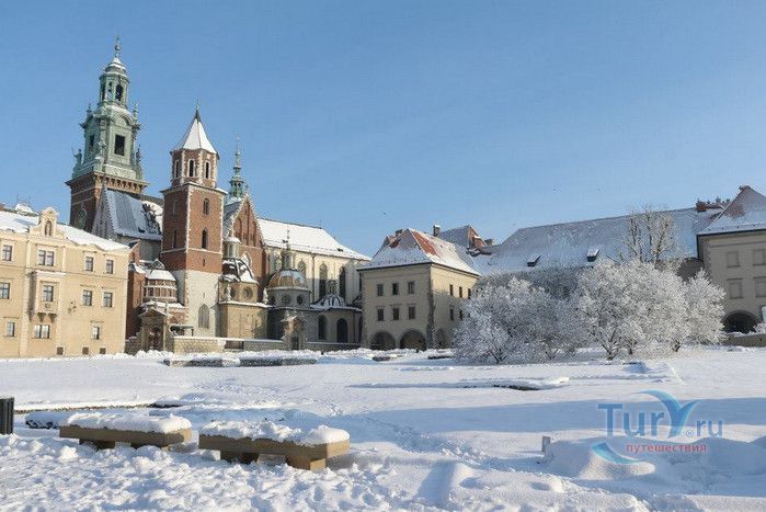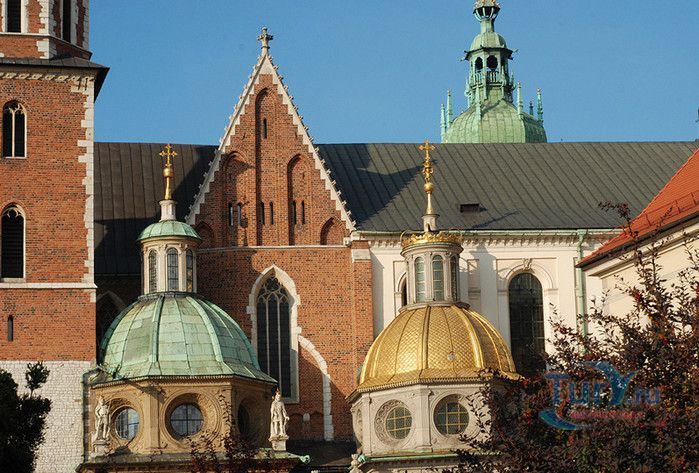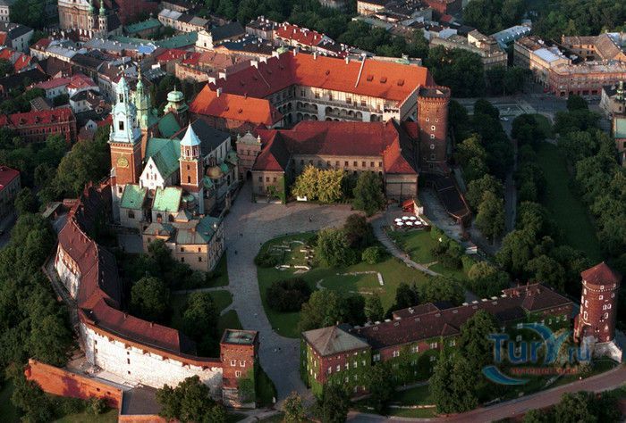 Королевский Замок на Вавеле расположен в городе Краков, на левом берегу Вислы, на высоте 228 метров над уровнем моря. К концу X века Вавель становится центром политической и духовной власти Польского государства, а со второй половины XI века и до начала XVII столетия является резиденцией польских королей. Первые польские правители Мешко I, Болеслав Храбрый и Мешко II строили свои дома на холме Вавель, каменный замок в романском стиле был возведен Вацлавом II в 1290-1300 годах, а в XIV веке замок был перестроен Казимиром III Великим в готическом стиле. В 1340 году стены замка и города были соединены. Наибольшего расцвета Краков и королевская резиденция достигли при правлении династии Ягеллонов. После большого пожара 1595 года замок был частично разрушен, король Сигизмунд III Ваза решает не восстанавливать здание и переезжает в Варшаву. Замок утрачивает значение королевской резиденции, однако, остаётся коронационным замком для польских королей. Переезд королевского двора в Варшаву привёл к медленному, но неуклонному обветшанию замка. В 1655-1657 годах Вавель был разграблен, а в 1702 году, во время Великой Северной войны, сожжён шведами. После третьего раздела Польши в 1795 году Вавель переходит в руки австрийцев. В замке размещаются казармы и военный госпиталь, многие здания, в том числе церкви, были снесены. В 1905 году Польша выкупает королевскую резиденцию у австрийцев, и сразу же на Вавеле начинаются восстановительные и реставрационные работы, которые длятся более 100 лет и продолжаются до сих пор. С 1930 года Королевский Замок на Вавеле вновь становится парадной резиденцией главы государства, а часть помещений отдаётся под музей. Перед входом в замок установлен памятник национальному герою, предводителю восстания 1794 года Тадеушу Костюшко. Сразу за королевскими воротами расположен Кафедральный собор святых Станислава и Вацлава, который являлся коронационным собором и усыпальницей польских королей. Собор был построен в XI-XII веках, с тех времён сохранились лишь часть башни Серебряных Колоколов и крипта Святого Леонарда. 18 апреля 2010 года в усыпальнице под башней Серебряных Колоколов были похоронены президент Польши Лех Качиньский и его супруга Мария. Нынешнее здание храма в готическом стиле возведено в XIV веке, в центре собора находится Алтарь Отчизны, на который короли возлагали военные трофеи, здесь же установлены королевские каменные саркофаги и гробница Казимира Ягеллона. Рядом с собором находятся часовни Сигизмунда, Ягеллонов и королевской династии Ваза. Королевский замок в готическом стиле восстановлен в том виде, который он имел при Казимире III Великом, большая часть стен построена в XVII веке при короле Владиславе IV Ваза. До наших дней сохранились три башни - Злодейская, Сандомирская и Сенаторская. На территории королевской резиденции находится самое старое сохранившееся здание в Кракове - ротонда Пресвятой Девы Марии, построенная в романском стиле на рубеже X и XI веков. В Королевском замке для посетителей открыты Государственные номера, Королевские частные покои, Королевская сокровищница и оружейная и выставка Утраченный Вавель. К наиболее ценным экспонатам Государственных номеров относится коллекция гобеленов, сотканных в Брюсселе в XVI веке по просьбе Сигизмунда Августа. В Большом зале депутатов потолок украшен резными головами, называе