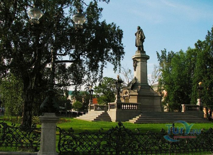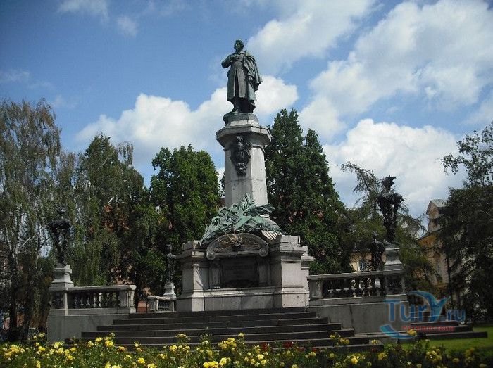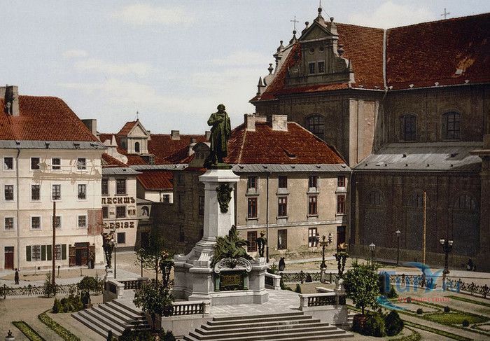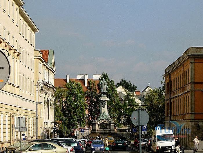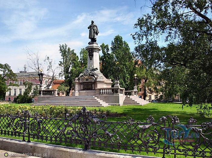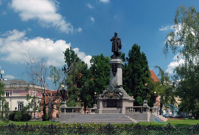 Памятник Адаму Мицкевичу установлен в Варшаве, в Краковском предместье, в 1898 году, к 100-летию польского поэта, драматурга, публициста и политического деятеля. В 1897 году, сначала в газете "Рядом", затем в журнале "Голос" были напечатаны материалы о выдающемся польском поэте, были высказаны предложения об открытии в Варшаве памятника Адаму Мицкевичу. Идею подхватили другие печатные издания и общественность Варшавы, а 25 февраля 1897 года, по инициативе польского писателя Генрика Сенкевича, был создан организационный совет по созданию памятника. В совет вошли граф Михал Радзивилл, Зигмунт Василевский и представители польской интеллигенции. Комитет занимался получением разрешения на установку монумента в Варшаве, вопросами финансирования и сбором пожертвований от горожан. 1 мая 1897 года разрешение от властей было получено, с 12 мая по 14 июля 1897 были собраны 235 734 рублей - пожертвования поступали из всех уголков страны и даже из-за рубежа. Изготовление памятника было поручено скульптору Циприану Годебскому и архитекторам Иосифу Дзеконьскому и Владиславу Маркони. Бронзовая статуя высотой 4,2 метра была отлита в итальянском городе Пистойя, а постамент изготовлен из гранита, специально привезенного из города Бавено. На постаменте выбиты даты рождения и смерти поэта, и прикреплена табличка с надписью "Адаму Мицкевичу - соотечественники 1898". Церемония открытия памятника состоялась 24 декабря 1898 года. Царские власти, опасаясь патриотических проявлений народа, запретили какие-либо выступления и шествия. На открытии присутствовали представители комитета по созданию памятника и 12 000 приглашенных гостей, монумент был открыт в полном молчании, под музыку из оперы "Халка" Станислава Монюшко. В 1942 году памятник был демонтирован немецкими оккупантами и вывезен в Германию. После окончания войны представители польской военной миссии разыскали части памятника в Гамбурге. Решением общественности Варшавы стало восстановление прежнего монумента, а не создание нового. Работы по реконструкции памятника возглавил Ян Щепковский, из-за нехватки фрагментов и отсутствия первичных эскизов процесс восстановления был довольно сложным. Однако, 28 января 1950 года памятник Адаму Мицкевичу стоял на прежнем месте.