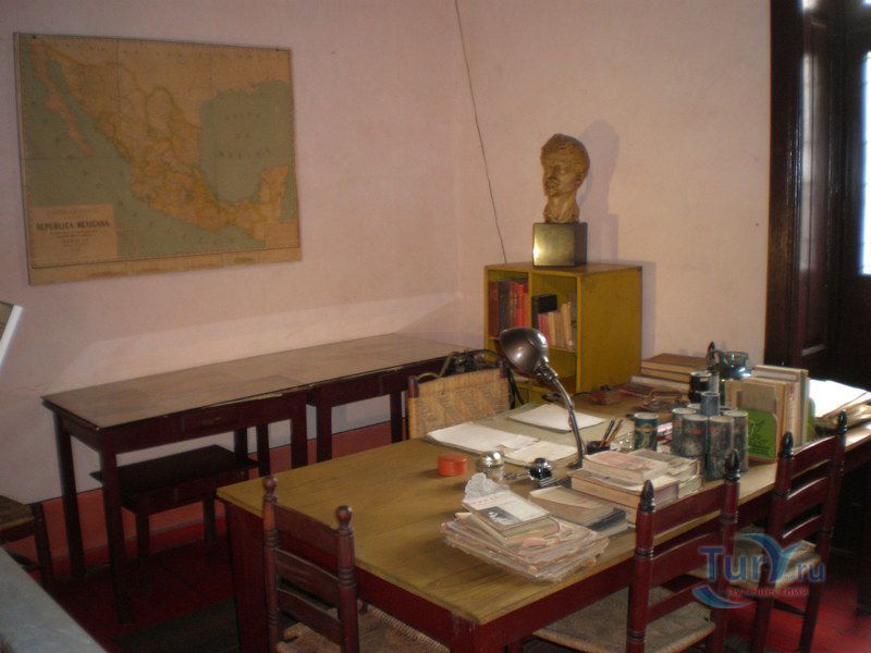 Лев Троцкий превратил свой дом в настоящую крепость: он знал, что рано или поздно его придут убивать. Но железные ставни, двойные стены и полицейский патруль так и не спасли ему жизнь. Смертельный удар был нанесён агентом НКВД, внедрившимся в окружение революционера. В мае 1940 года в доме было совершено первое неудачное покушение. Группа из 20 убийц под предводительством художника Давида Альфаро Сикейроса ворвалась в дом Троцкого и буквально изрешетила пулями всю мебель. В кровать попало примерно 50 пуль, и её пришлось заменить. Всего же было выпущено 200 пуль. Троцкий и Седова сумели укрыться и в тот день не пострадали. После этого случая президент Мексики Лазаро Карденас приказал укрепить дом и усилить охрану Троцкого. Испанец Рамон Меркадер сумел внедриться в окружение Троцкого и регулярно бывал у него в гостях. 20 августа 1940 года, зайдя в кабинет к опальному деятелю революции, Меркадер нанес ему по голове смертельный удар ледорубом. Лезвие вошло в череп на 7 сантиметров; Троцкий умер в больнице на следующий день.