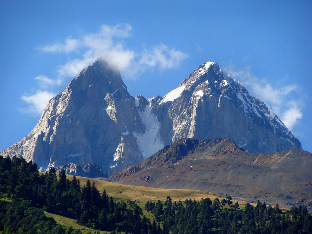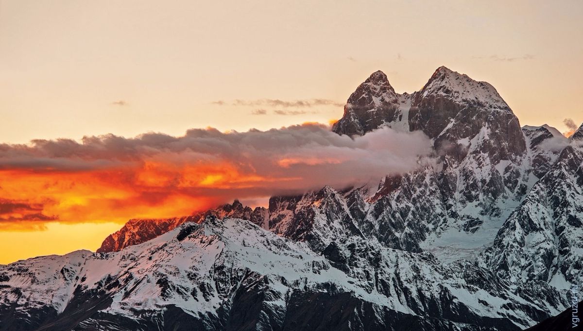 Ушба (по-грузински უშბა) - одна из самых заметных вершин Кавказских гор. Она расположена в Сванетском регионе Грузии, к югу от границы с Кабардино-Балкарской областью России. Несмотря на то, что Ушба не входит в десятку самых высоких вершин хребта, она известна как «Маттерхорн Кавказа» из-за своей живописной вершины в форме двойного шпиля. Из-за крутого спуска и нестабильной погоды Ушба считается многими альпинистами самым сложным восхождением на Кавказе.