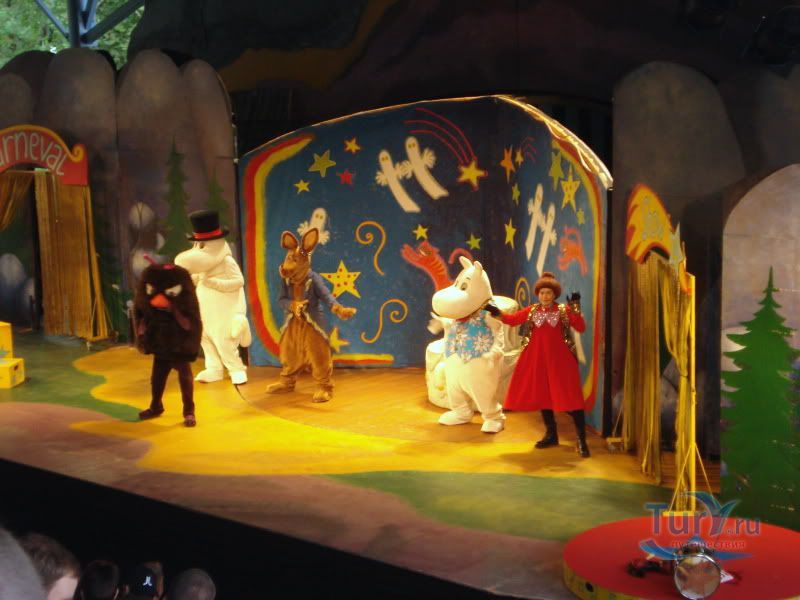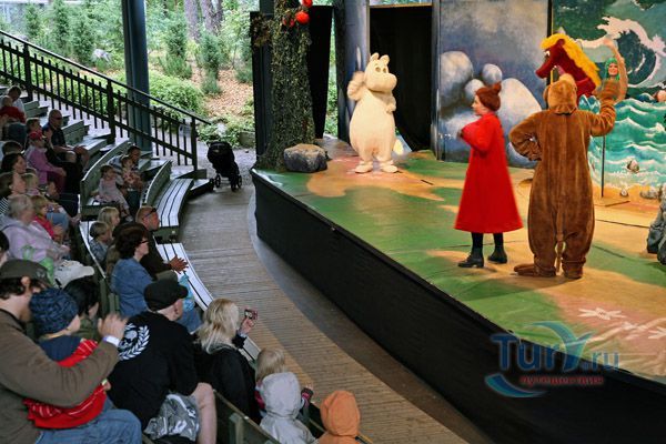 Долина Мумми-троллей расположена на острове, к которому ведет деревянный помост. На острове все устроено именно так, как описано в книгах Туве Янссен. Вы сможете побывать в голубом замке - домике мумми-троллей, где все настоящее: лестница, комнаты, кровати, даже фотография Мумми-тролля в детстве, только маленьких размеров. А внизу, в кладовой, стоят банки с вкусным вареньем, тоже настоящим! Недалеко от домика можно встретить живого Муми-тролля, Снусмумрика, ведьму и других старых знакомых из Долины муми-троллей.