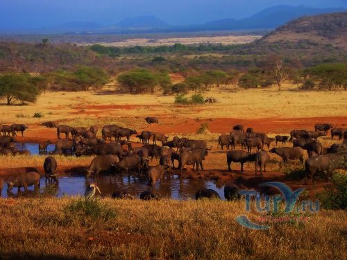 Главная географическая достопримечательность парка – река Тарангире, в долине которой находятся самые лучшие места для съемки животных. У водопоя часто появляются стада слонов, численностью до 1200 особей. Самцов легко отличить от самок по роскошным длинным бивням. Помимо слонов, есть вероятность встретить огромные – в несколько тысяч – стада буйволов, которые обычно обитают на заболоченных территориях в южной части парка. Но слоны и буйволы – это далеко не все, что может предложить увлеченному фотографу парк Тарангире. Вы сможете поймать в объектив и других интересных животных, таких как жираф, бородавочник, водяной козел, импала (чернопятая антилопа), зебра, страус. Несмотря на то, что представителей семейства кошачьих в парке немного, в районе реки часто замечают львов.