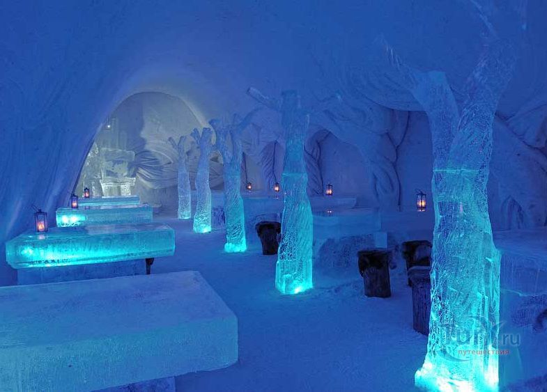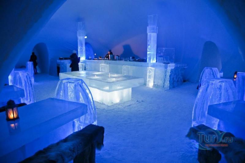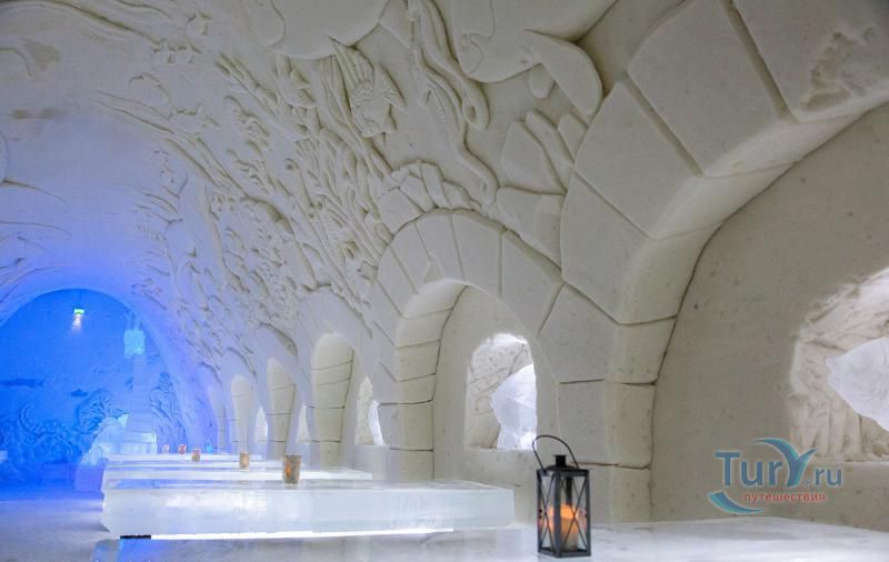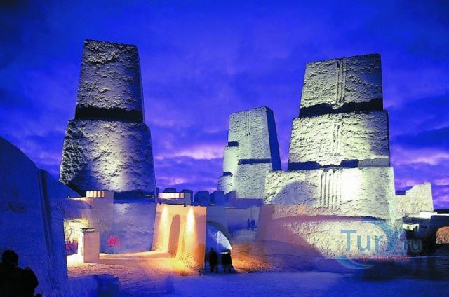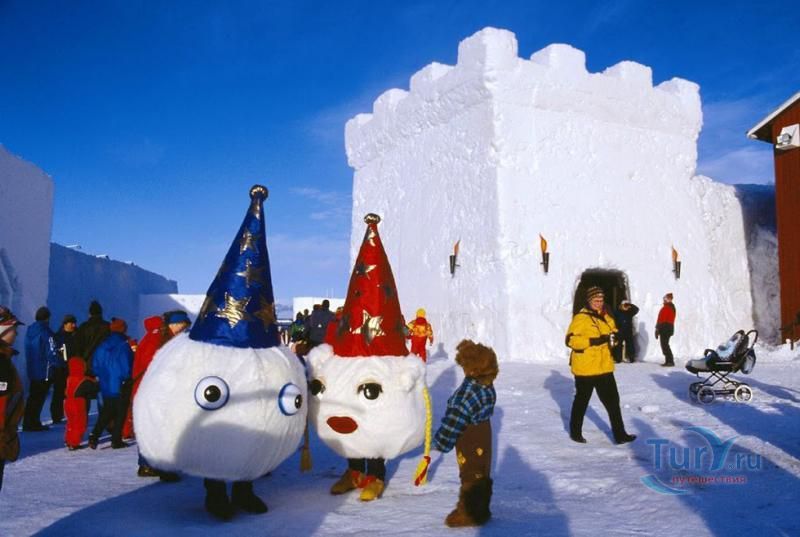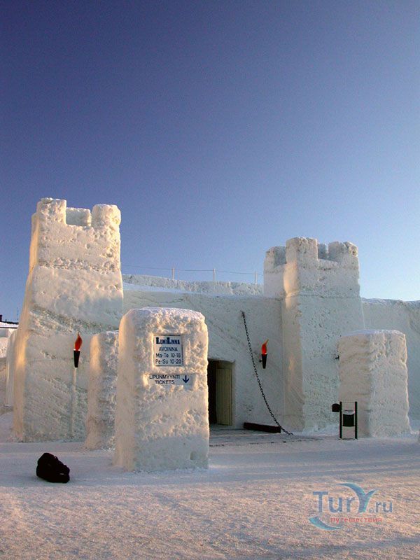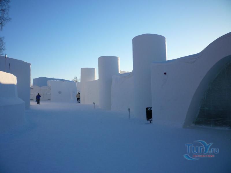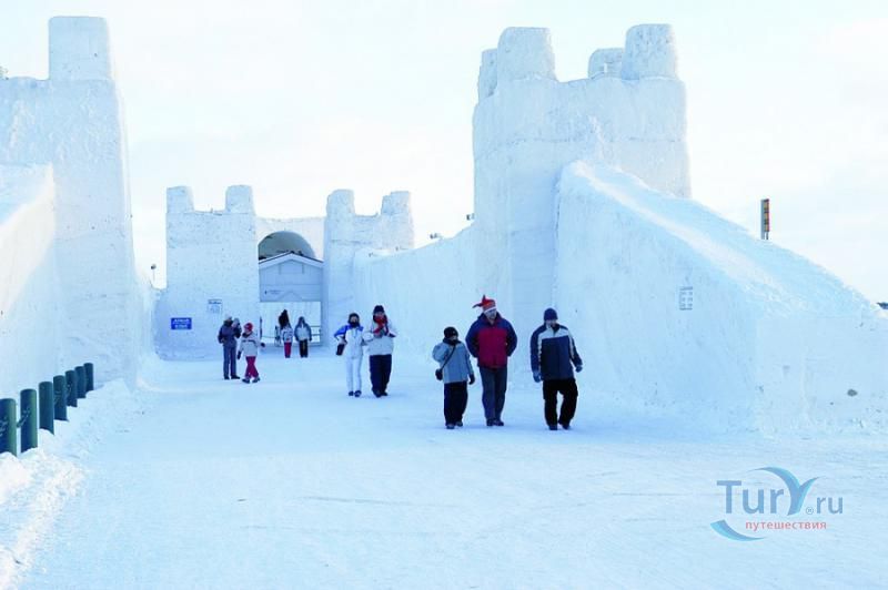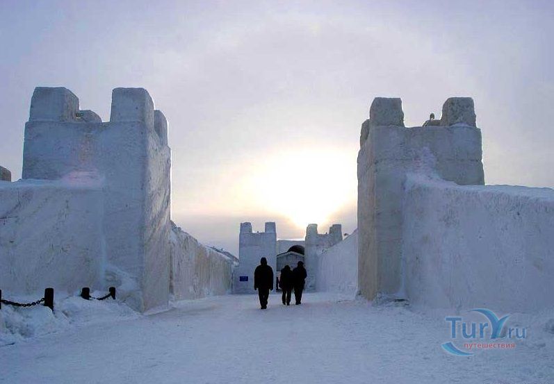 Самый большой в мире Снежный замок - это великолепный пример великого таланта и умения местных архитекторов и строителей. Внутри стен замка дети и взрослые смогут получить незабываемые впечатления. Замок был построен впервые в 1996 году и стал настолько популярным, что его стали строить каждую зиму. Дизайн замка меняется каждый год. В замке расположены Снежный отель, Снежная часовня, художественная галерея, бар, ресторан, сауна и другие интересные места, число которых увеличивается с каждым новым замком. Для детей имеется специальное место, включая парк для игры в снежки и снежные туннели. Снежный отель является одним из самых интересных мест в мире, где можно остановиться на ночь. Температура в комнатах отеля держится на уровне -5°C, но здесь имеются специальные теплые и комфортные спальные мешки. Снежная часовня - это место, куда стоит пойти в поисках покоя. Часовня в распоряжении людей всех религий. Она также используется для проведения свадебных церемоний. Снежный ресторан, украшенный ледяными скульптурами, является также незабываемым событием для посетителей. Столики его сделаны изо льда, а сидения покрыты оленьим мехом. Художественная галерея в замке заполнена прекрасными ледяными статуями, великолепие которых еще более поражает благодаря световым и звуковым эффектам.