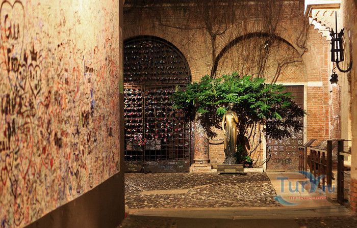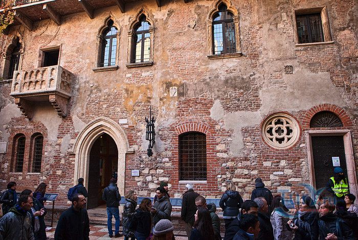 Дом Джульетты в Вероне был построен в XIII веке и принадлежал роду Даль Каппелло, который стал прообразом семьи Капулетти в бессмертном произведении Уильяма Шекспира "Ромео и Джульетта", их герб в форме мраморной шляпы высечен на арке, ведущей во внутренний двор. В 1667 году одним из представителей рода Каппелло дом был продан и затем неоднократно менял хозяев. В XIX веке в нём находился постоялый двор. К началу XX столетия дом полностью обветшал и в 1907 году был выставлен хозяевами на аукцион. Дом приобрёл муниципалитет Вероны для устройства в нём музея, посвящённого шекспировской пьесе, но длительное время здание находилось в запустении. Всё изменилось после выхода в 1936 году на мировые экраны фильма Джорджа Кьюкора "Ромео и Джульетта", вызвавшего огромный интерес у зрителей и привлекший в Верону массу туристов. В доме Джульетты начались активные реставрационные работы по приданию ему романтического вида. Фасад был украшен декоративными элементами, окна второго этажа оформили готическими трёхлистниками и был построен балкон, с которого Джульетта, якобы, говорила с Ромео. Сотни девушек, по традиции, выходят на балкон дома Джульетты, чтобы найти своего Ромео, и их совсем не волнует, что балкон был построен уже в наше время. Внутренний двор дома также был перестроен, ему придали черты соответствующей сцены из фильма Кьюкора, построили зубчатую стену, колонну под балконом, а на стену дома поместили доску со строками шекспировской трагедии. В 1972 году во внутреннем дворике была установлена бронзовая статуя Джульетты, выполненная веронским скульптором Нерео Костантини. Прикоснуться к статуе считают хорошей приметой, говорят, что потерев правую грудь бронзовой Джульетты, можно найти свою любовь. От частых прикосновений статуя была настолько истёрта, что власти города решили поместить её в музей, а во двор дома Джульетты поставить копию. Туристы также оставляют записки и пишут признания в любви на внутренних стенах арки, ведущей во двор с улицы. Для поклонников героев Шекспира в доме установлены почтовые ящики, корреспонденция доставляется в Клуб Джульетты, расположенный в двух шагах от дома Джульетты. В доме размещена экспозиция, посвящённая Ромео и Джульетте - картины, фотографии сцен из фильма Кьюкора и реквизиты из фильма Дзеффирелли "Ромео и Джульетта". Ежегодно 16 сентября в музее празднуют день рождения Джульетты, а в День влюблённых 14 февраля в доме Джульетты чествуют авторов наиболее трогательных посланий к шекспировской героине.