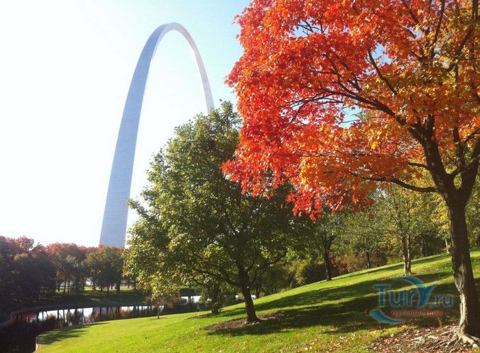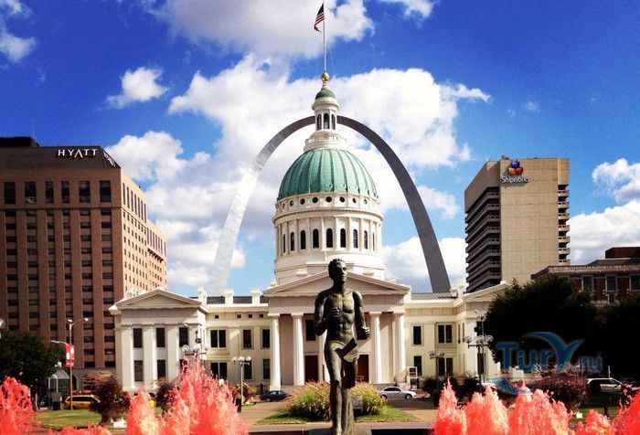 Арка (Gateway Arch) в Сент-Луисе - это большие ворота из нержавеющей стали. Но только они не настоящие, а символические, потому что напоминают о той роли, которую Сент-Луис играл когда-то давно, во времена первооткрывателей. Тогда этот город называли Воротами на Запад. Высота Арки - 192 метра. Она символизирует надежду и примирение человека и Бога. В Библии говорится: Бог создал радугу, когда кончился Потоп, и Ной, его семья и все животные покинули Ковчег, чтобы снова заселить опустевшую землю. Радуга - знак того, что Бог никогда больше не нашлет потопа на опустошение земли, поэтому она кажется достойным памятником тем исполненным надежд мужчинам, женщинам и детям, которые покинули знакомый и безопасный мир, чтобы заселить просторы Запада. Но Арка в Сент-Луисе - это и напоминание о приключениях, в которые вылилось завоевание Запада. Проект Арки выполнил американский архитектор Эро Сааринен. Готова она была в 1967 году. Внутри этого сооружения есть лифты, которые поднимают туристов к смотровым окнам, откуда открывается впечатляющий вид на город Сент-Луис и реку Миссисипи. Арка-радуга - это часть Национального мемориала Т. Джефферсона, а стоит она точно на том месте, где в 1764 году неким французом-меховщиком был основан Сент-Луис, названный так по имени двух французских королей: Людовика IX Святого и Людовика XV. В 1803 году город вошел в состав Соединенных Штатов и превратился в горячую точку для всех тех, кто хотел завоевывать и исследовать Запад. В 1804 году президент Джефферсон послал сюда на разведку Мериуэзера Луиса и Ульяма Кларка. Они обнаружили здесь реку Колумбия. После них Зебулон Пайк, отправившись из Сент-Луиса, исследовал истоки Миссисипи и перешел через Скалистые горы. Позже, в эпоху пароходов и железных дорог, Сент-Луис стал отправной станцией для растущего потока переселенцев на Запад. В этом городе полные надежд первопроходцы могли обеспечить себя всем необходимым, начиная от телег и волов и кончая оружием, инструментами, кастрюлями и сковородками. Их история засвидетельствована в документах в Музее завоевания Запада (The Museum of Westward Expansion) и представлена фотографиями, географическими картами, рисунками и другими самыми разнообразными экспонатами. Там можно посмотреть и пленку, заснятую во время строительства Арки. Достойно посещения также и старинное, 1839 года, здание суда (Old Courthouse) с дорическими колоннами. Само здание было закончено только в 1862 году. На его крыше - ренессансный купол, который, правда, был водружен только после долгих дискуссий, потому что возникали опасения, не разрушит ли он саму постройку. Здание суда стало знаменитым из-за проходившего в нем процесса Дреда Скотта: в 1857 году рабов лишили права обращаться в суд, и это постановление стало одной из причин гражданской войны, начавшейся в 1861 году.