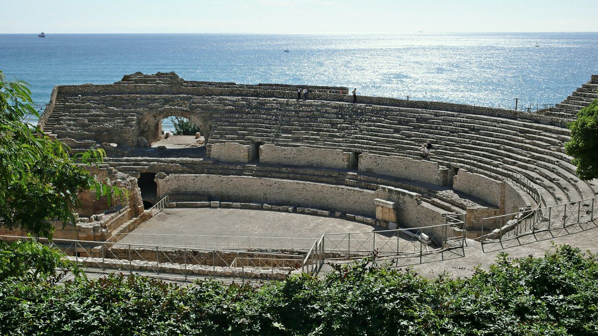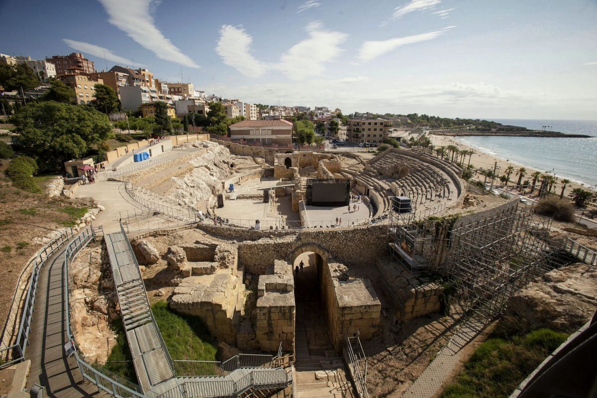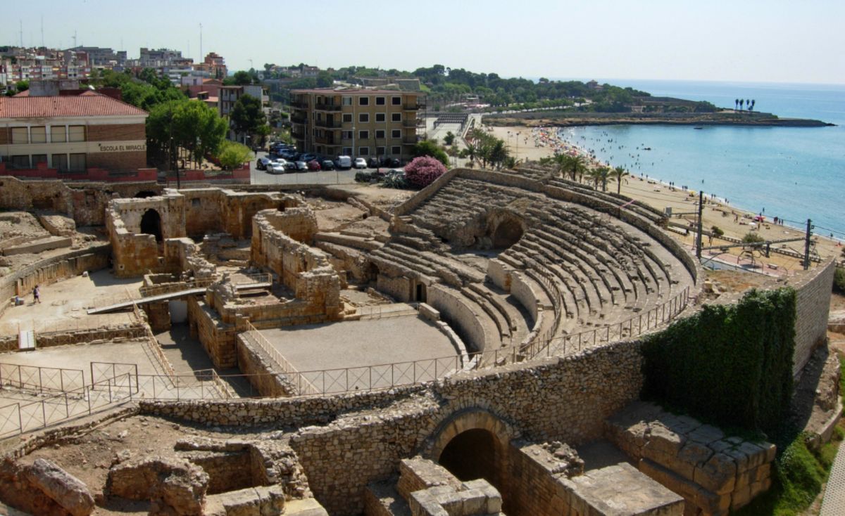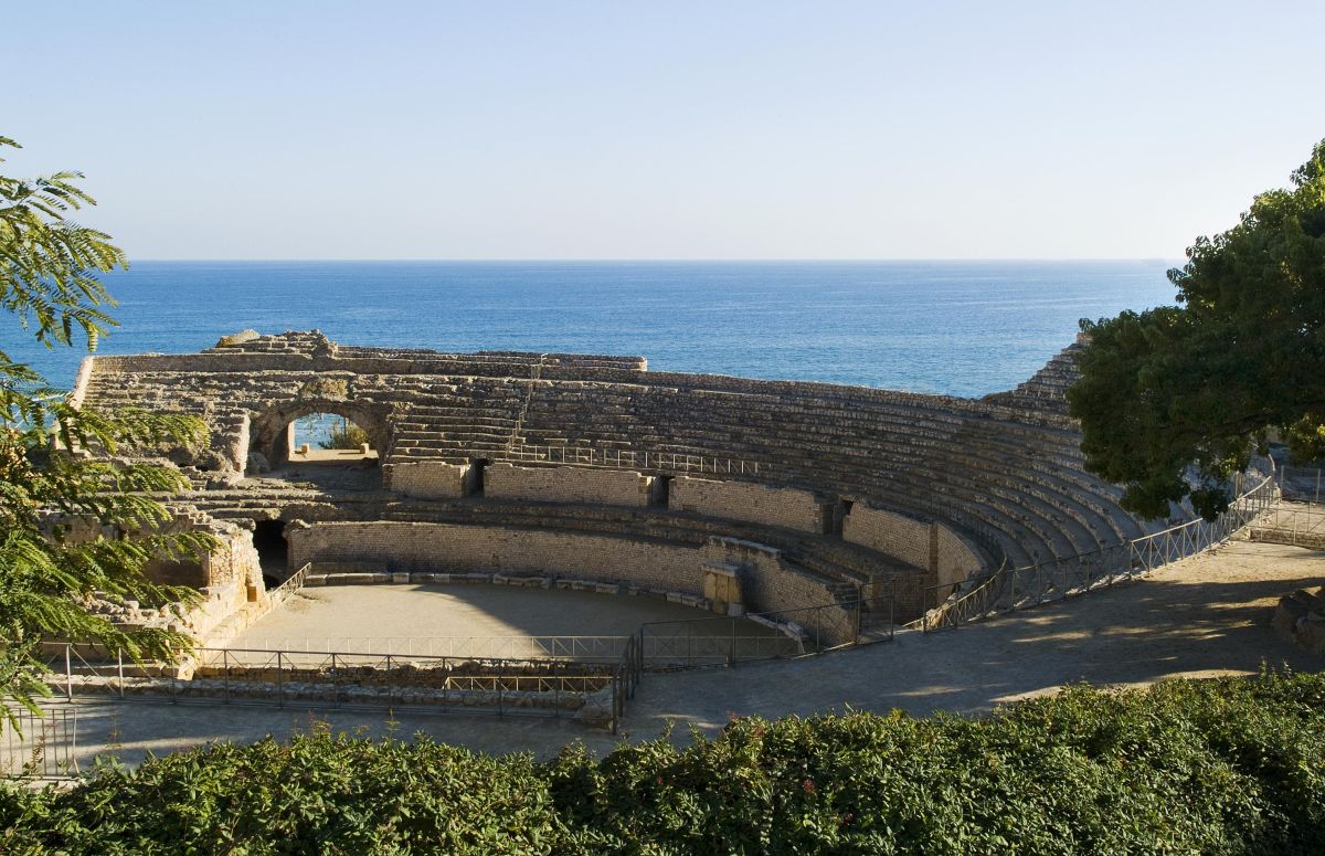 Амфитеатр завершает гармоничную трилогию традиционных зданий (театр, цирк и амфитеатр), характерных для римского города первого уровня, столицы одной из имперских провинций. Строительство является результатом щедрого пожертвования провинциального фламенко (императорского священника), имя которого неизвестно, но, как известно, жил он в начале 2-го века нашей эры.