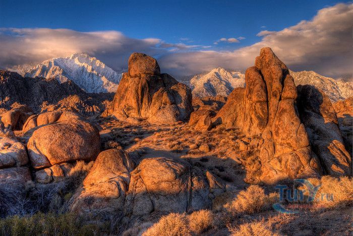 Алабама Хиллс - каменная формация у восточного склона гор Сьерра-Невада. Алабамские Холмы являются популярным местом съемок фильмов, особенно вестернов. С начала 1920-х годов здесь были сняты более 150 фильмов и около десятка телевизионных шоу.