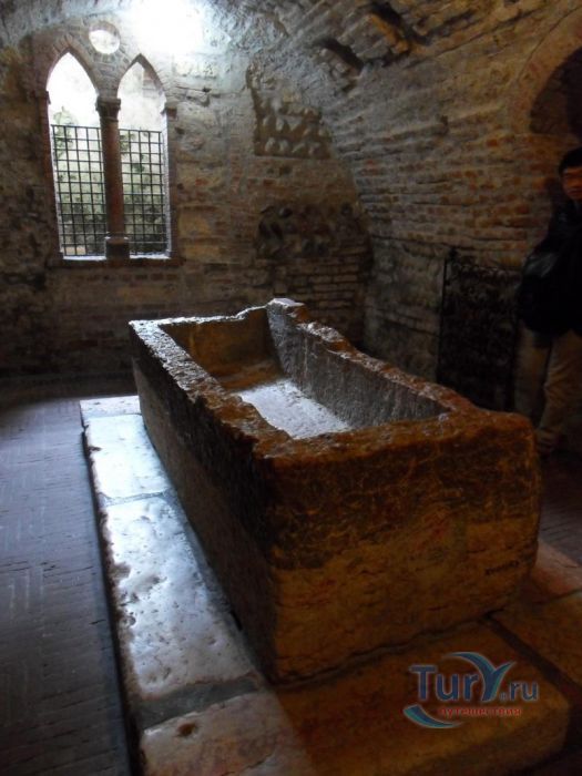 Один из главных туристических объектов Вероны, связанный с героями пьесы Вильяма Шекспира – гробница Джульетты – средневековый саркофаг из красного мрамора, расположенный в крипте покинутого монастыря. Согласно легенде в монастыре Сан Франческо происходило тайное венчание Ромео и Джульетты, и здесь же они были похоронены. Впервые гробница Джульетты в монастыре капуцинов упоминается в новелле Луиджи да Порто, после чего сюда началось настоящее паломничество влюбленных и романтиков. Недовольные высокой популярностью безымянной могилы церковные власти передвинули саркофаг и превратили его в емкость хранения воды, для стока в камне были пробиты отверстия, которые позже были заделаны, но их следы на поверхности саркофага видны и теперь. На несколько веков Гробница Джульетты была забыта, за это время саркофаг пережил мощнейший взрыв, случившийся на соседнем оружейном складе. Новая волна популярности этого места стала следствием выхода в 1807 году культового романа Жермен ле Саль «Коринна, или Италия», в котором снова упоминалась гробница Джульетты.