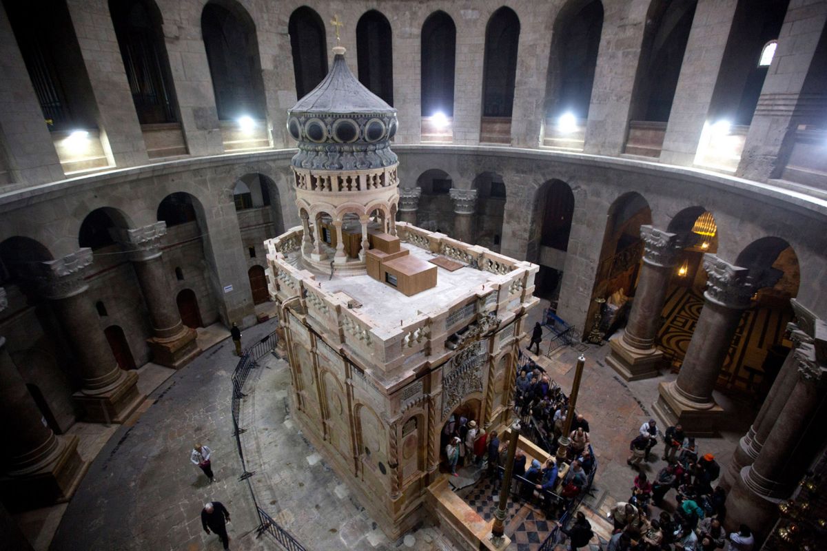 В Кувуклии имеются два помещения: Гроб Господень и Придел Ангела.