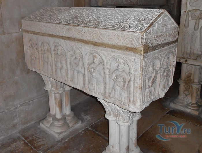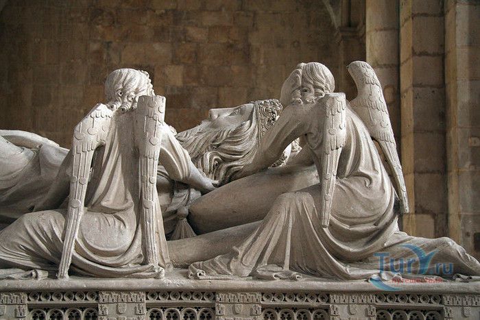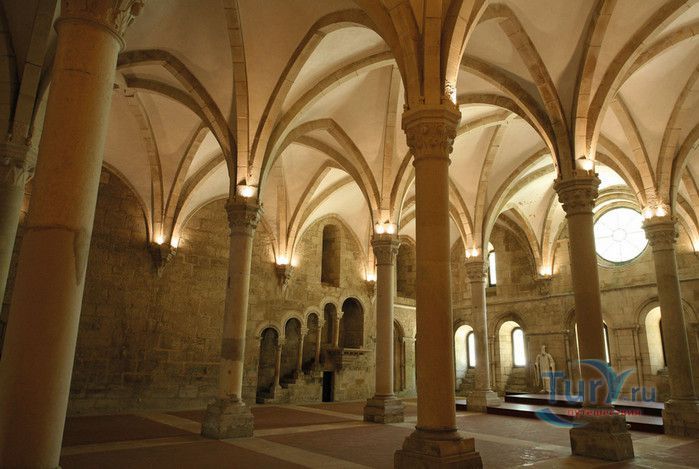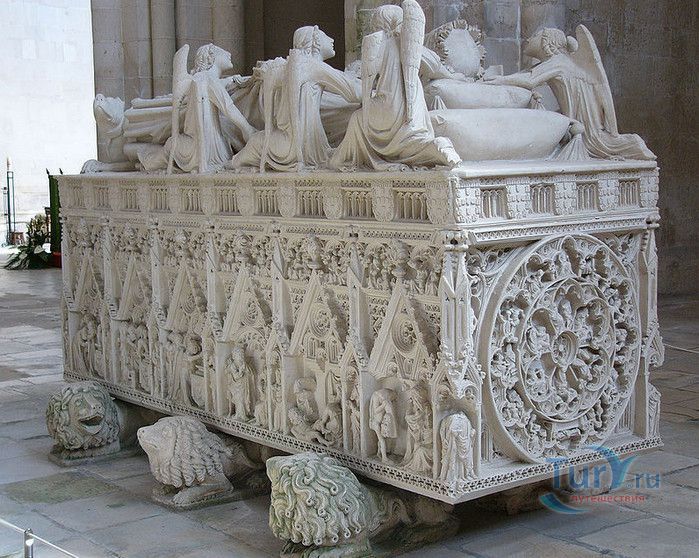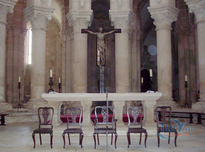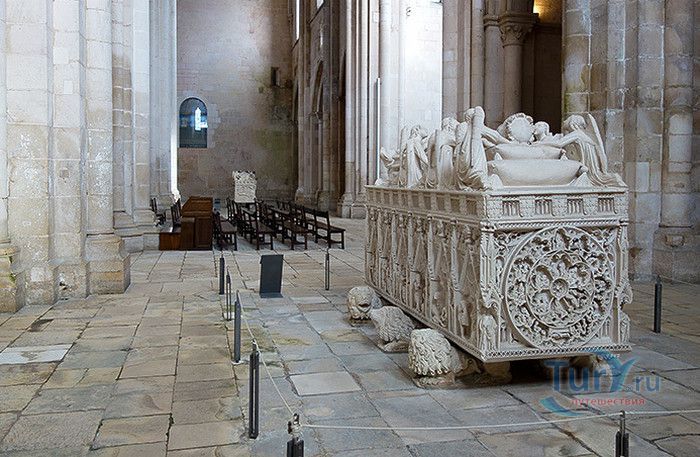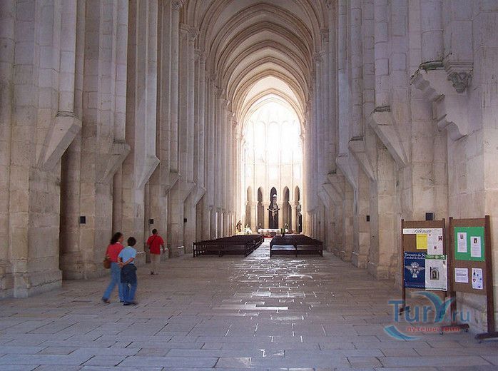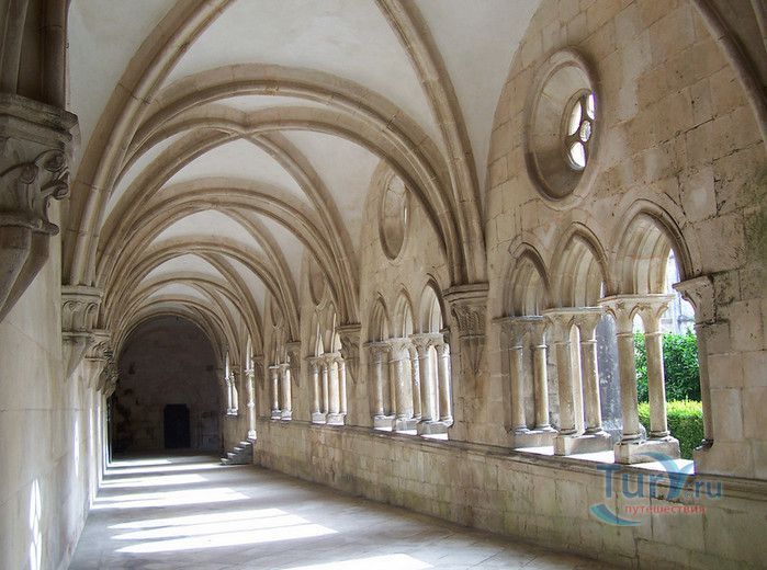 Цистерцианский Монастырь Санта-Мария де Алкобаса (Монастырь Алкобаса) расположен в Португалии, в городе Алкобаса. Монастырь основан 8 апреля 1153 года королём Португалии Альфонсом Энрикешем в честь завоевания городов Сантарен и Лиссабон в 1147 году. Строительство монастыря началось в 1178 году. Цистерцианские монахи поселились в Алкобасе за 25 лет до возведения храма, сначала они жили в деревянных постройках, а в 1223 году переселились в монастырь. Строительство церкви и монастыря велось в готическом стиле и было завершено в 1252 году. В XIV-XVI веках монастырь становится крупным феодальным собственником, в его подчинении находились города, замки и обширные сельскохозяйственные угодья, в течение двух столетий монастырь служил королевской усыпальницей. Обитель становится центром ремёсел, при монастыре была открыта общественная школа и создана библиотека, которая стала одной из крупнейших средневековых библиотек в Португалии, но была разграблена в 1810 году во время вторжения французских войск. В XVI веке, во время правления короля Мануэля I, монастырь был расширен, добавлен второй этаж в монастырской обители и построена новая ризница в популярном в то время стиле мануэлино. В XVIII столетии здание было обновлено в стиле барокко. Землетрясение 1755 года и наводнение 1772 года нанесли монастырю значительный ущерб, реконструкция потребовала значительных финансовых трат, что серьёзно подорвало благосостояние монастыря. А в 1810 году, во время Наполеоновских войн, была сожжена часть внутреннего убранства храма, разграблены монастырские сокровищница и библиотека. В 1834 году монастырская собственность была изъята в пользу государства, последним монахам было приказано покинуть монастырь. Центральным сооружением монастыря является трёхнефная базилика, портал и окно-роза, которые остались от первоначальной церкви, а статуи и фланговые башни были достроены в начале XVIII века. Два крыла главного фасада выполнены в стиле барокко. Церковь построена в форме латинского креста, имеет трансепт и три прохода, колонны и стены лишены убранства, что свойственно цистерцианским церквям. Северный проход ведёт в Монастырь тишины, построенный в XIV веке. В трансепте, напротив друг друга, находятся гробницы короля Педро I и его возлюбленной Инес де Кастро, выполненные в готическом стиле. В южной стороне трансепта расположена часовня святого Бернарда, в ней похоронены Афонсу II и Афонсу III. Справа от трансепта находится Королевский Пантеон с могилами португальских королев Урраки и Беатрис Кастильских. Рядом со входом в собор находится Зал Королей, в котором установлены статуи португальских монархов, стены украшены панно из традиционной бело-голубой плитки, на которых изображена история создания монастыря. В настоящее время Монастырь Алкобаса является одной из значимых достопримечательностей Португалии, в 1989 году он внесен в список Всемирного наследия ЮНЕСКО.