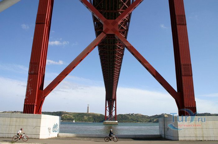 Подвесной Мост имени 25 Апреля соединяет город Лиссабон с муниципалитетом Алмаде и пересекает место впадения реки Тежу в Атлантический океан. Идея создания моста, соединяющего Лиссабон с Алмадой возникла ещё в 1876 году, но только в 1953 году правительство Португалии сформировало комиссию, главной задачей которой стала организация железнодорожного и автомобильного транспортного движения между столицей и южным берегом реки Тежу. В 1958 году было принято официальное решение о строительстве моста, а в 1959 году объявлен открытый международный конкурс на его проект. 9 мая 1962 года победу в конкурсе одержала Экспортная сталелитейная компания США, и 5 ноября 1962 года началось строительство моста. Работы велись Американской Мостостроительной Компанией и одиннадцатью местными компаниями. Полная стоимость возведённого моста на момент его открытия составляла 32 миллиона долларов США. 6 августа 1966 года в Алмаде состоялась торжественная церемония открытия моста, на которой присутствовали президент Португалии Америку ди Деуш Рудригеш Тумаш, премьер-министр Антониу ди Оливейра Салазар и патриарх Лиссабона, кардинал Мануэл Гонсалвиш. Мост стали называть мостом Салазар. После революции 25 апреля 1974 года, в результате которой в Португалии была установлена демократия, мост был переименован и стал называться Мостом имени 25 Апреля. В 1998 году ширина проезжей части для автотранспорта была расширена с 4 до 6 полос, а 30 июня 1999 года было открыто движение поездов по Южной линии. Длина моста равна 2 277,64 метрам, высота верхней платформы над поверхностью воды - 70 метров, высота главных опор над поверхностью воды - 190 метров. Мост Имени 25 Апреля является одним из самых длинных мостов мира, ежедневно через него проезжают более 150 000 автомобилей и 157 поездов. На стадии утверждения проекта планировалось, что платный проезд через Мост имени 25 Апреля погасит накопленные за двадцать лет долги, и сразу после этого эксплуатация моста станет бесплатной. Однако, португальское правительство приняло решение сохранить размер сбора на прежнем уровне, сегодня плата взимается только за проезд в северном направлении. В 1996 году техническое обслуживание моста передано частному консорциуму Лузопонте.
