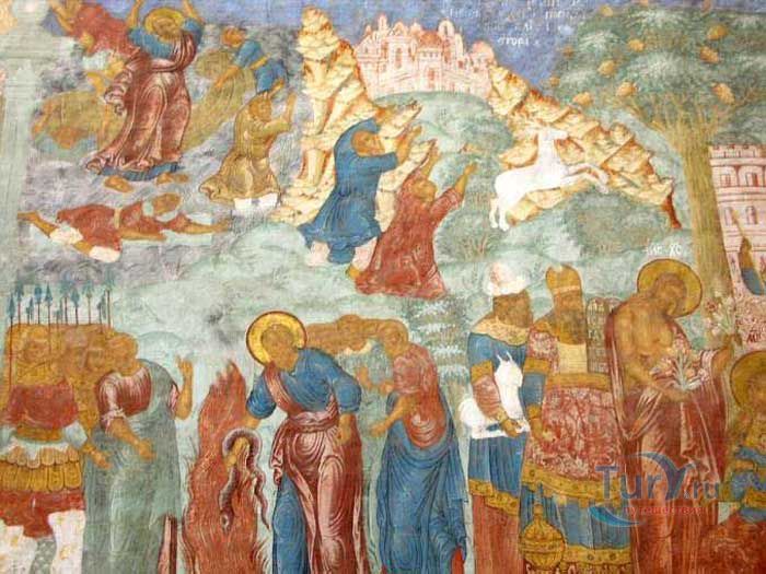 На стенах храма фресками изображены события Священной истории - вверху Ветхого, а внизу Нового Завета. В подвальном помещении Троицкого собора находится храм во имя святого праведного Лазаря Четверодневного. Он был устроен в 1768 году епископом Дамаскиным и имел назначение служить усыпальницей для костромских архипастырей.