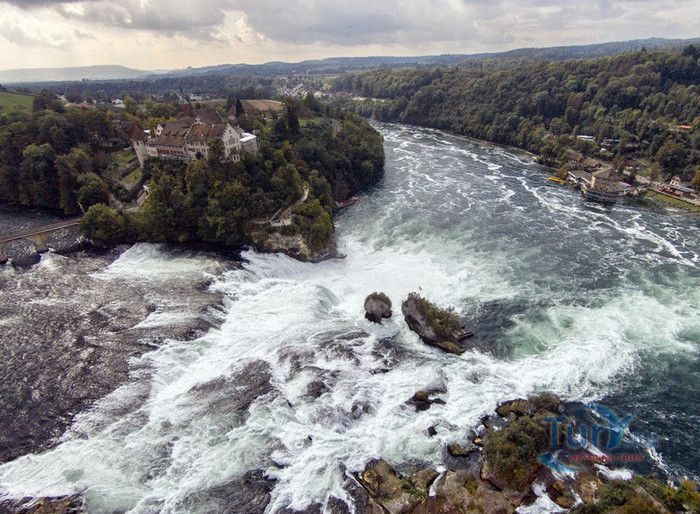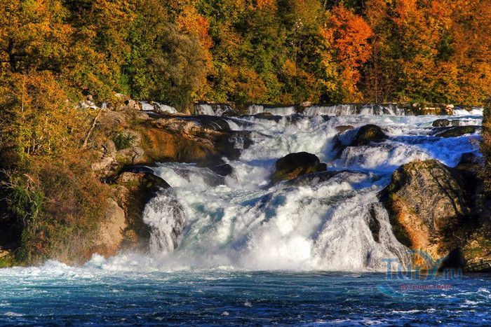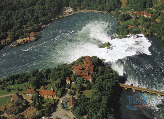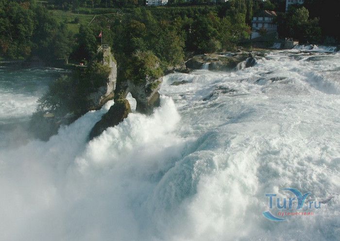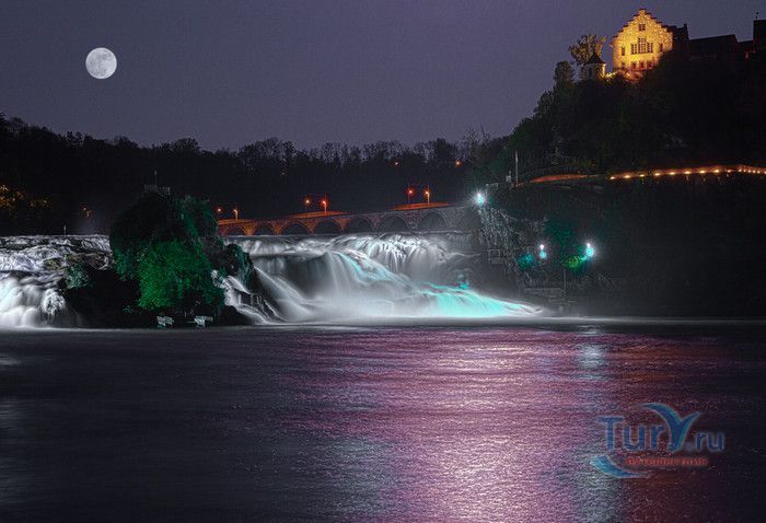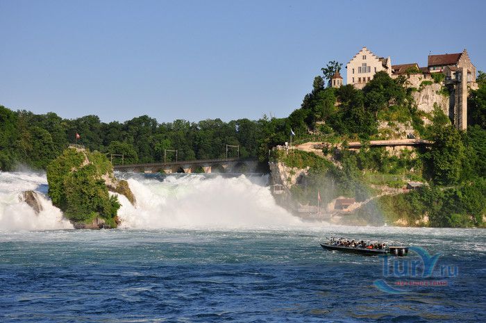 Самый большой и самый мощный водопад в Европе впечатляет не столько своей высотой (23 метра), сколько огромными объемами падающей воды. Это великолепное природное чудо особенно замечательно во время поздней весны, когда тающий снег добавляет его объем. На холме выше водопада располагается средневековый замок Шлоссе Лауфен, в котором находятся ресторан, магазины и молодежная гостиница. Туманы всех цветов радуги поднимаются от леса и окружают замок, создавая восхитительную атмосферу. Летом один из основных моментов посещения водопада - это поездка на лодке поперек белой воды к Центральной скале с коротким подъемом по лестнице на вершину. Захватывающими дух видами можно также насладиться с трех пунктов наблюдения вдоль маршрута, ведущего к замку. Наблюдательный пункт Казели с выступающей платформой у основания водопада наиболее поразителен. У Рейнского водопада проходит фантастический показ фейерверков в Национальный день Швейцарии (1 августа), который привлекает тысячи зрителей каждый год.