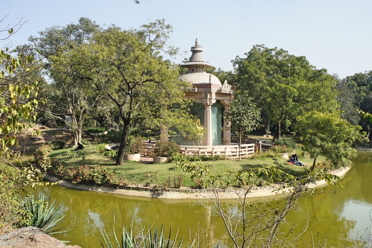 Буддийский храм в Будда Джаянти Парке (Buddha Jayanti Park) в Нью-Дели, Индия, называется "Вишва Шанти Стоупа" или "Мира Стоупа". Этот храм был построен в память о Будде и служит местом для молитвы, медитации и поклонения.