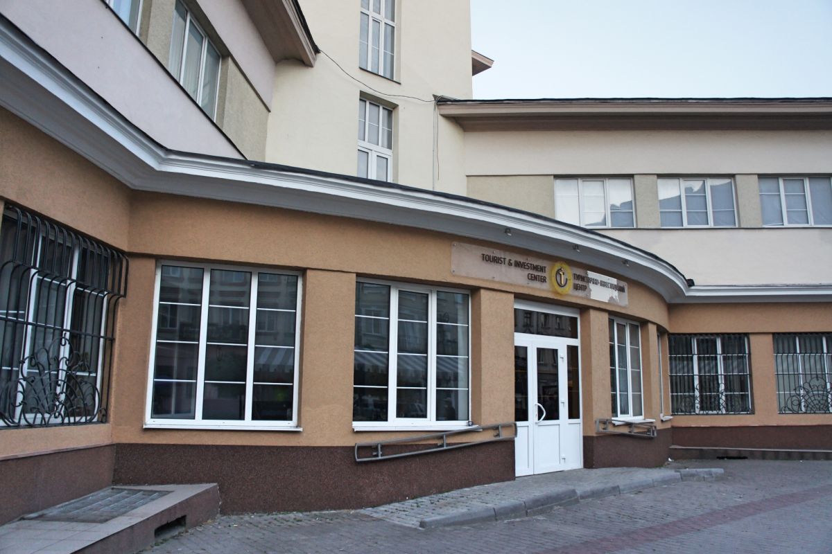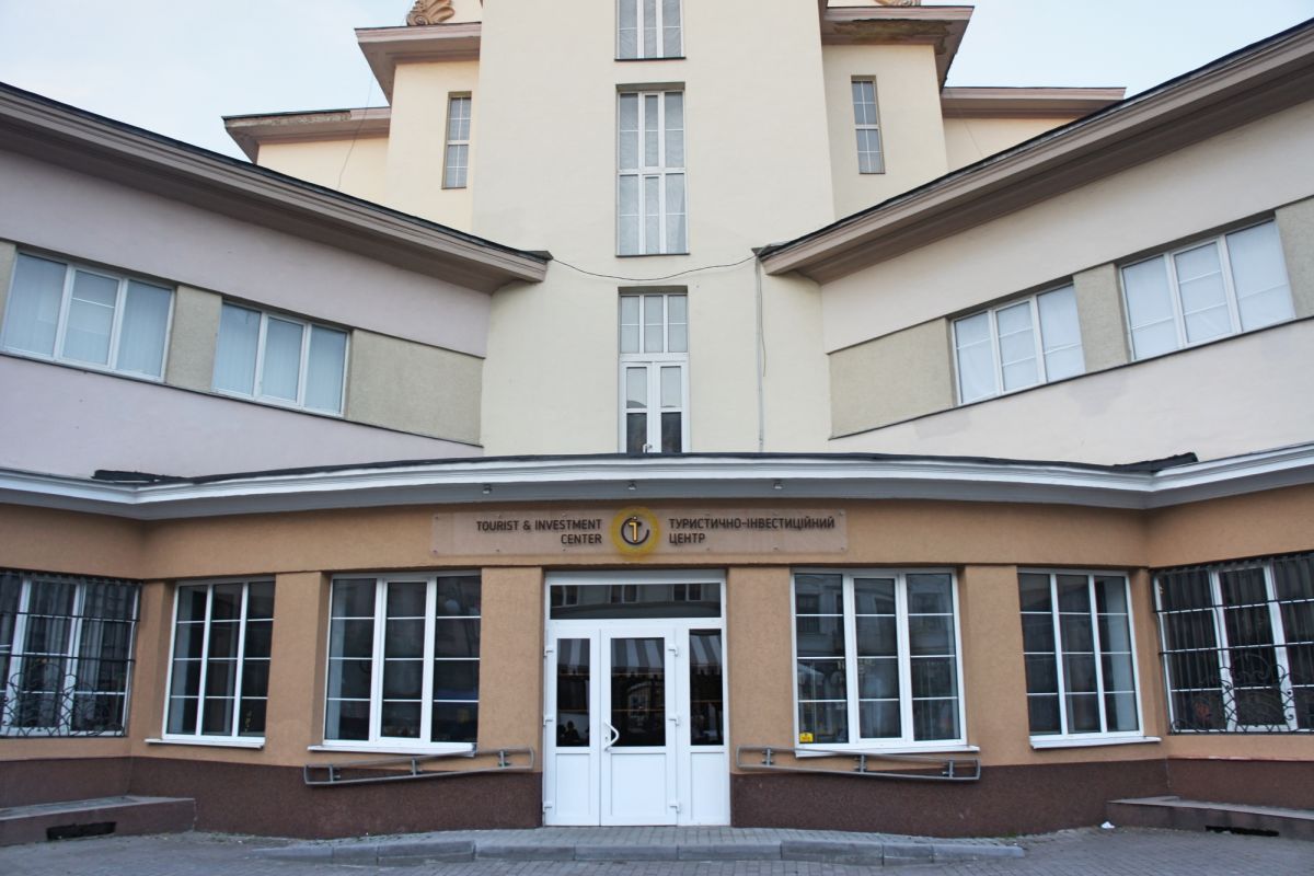 Здание построено из железобетона и облицовано светлым камнем и штукатуркой. Оно симметрично по осям, с массивным вертикальным объёмом в центре и крыльями, выходящими на четыре стороны. Главной особенностью стала башня с обзорной площадкой, откуда открывается панорамный вид на старый город и Карпатские предгорья. Общая высота сооружения — около 50 метров.