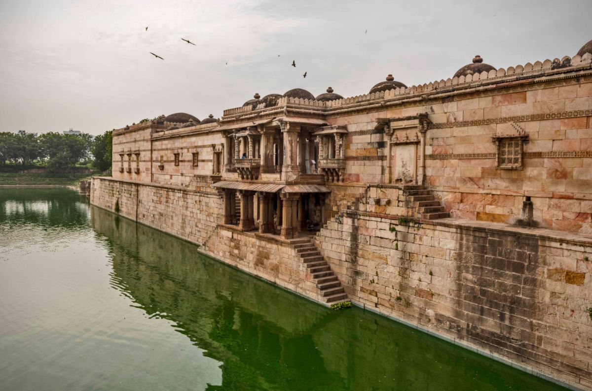 Город Ахмадабад был основан в 1411 году султаном Ахмед Шахом на восточном берегу реки Сабармати как столица Гуджаратского султаната. Город походил на неприступную крепость - сначала была построена цитадель Бадхра, а чуть позже, при внуке Ахмед Шаха, столица была обнесена мощной 10-ти километровой крепостной стеной с 12 воротами, 189 бастионами и 6000 бойницами. Во время правления династии Музаффаридов в городе активно возводились мечети, дворцы, мавзолеи, хавели, богато украшенные каменной и деревянной резьбой. Отличительной чертой города, придавшей ему неповторимый колорит, стали традиционные жилые дома (пулы), плотно сгруппированные вдоль традиционных улиц (пурах) с внутренними дворами, уникальной особенностью которых являются чабутро (кормушки для птиц в виде башнеобразной конструкции) и общественные колодцы.