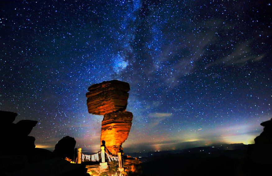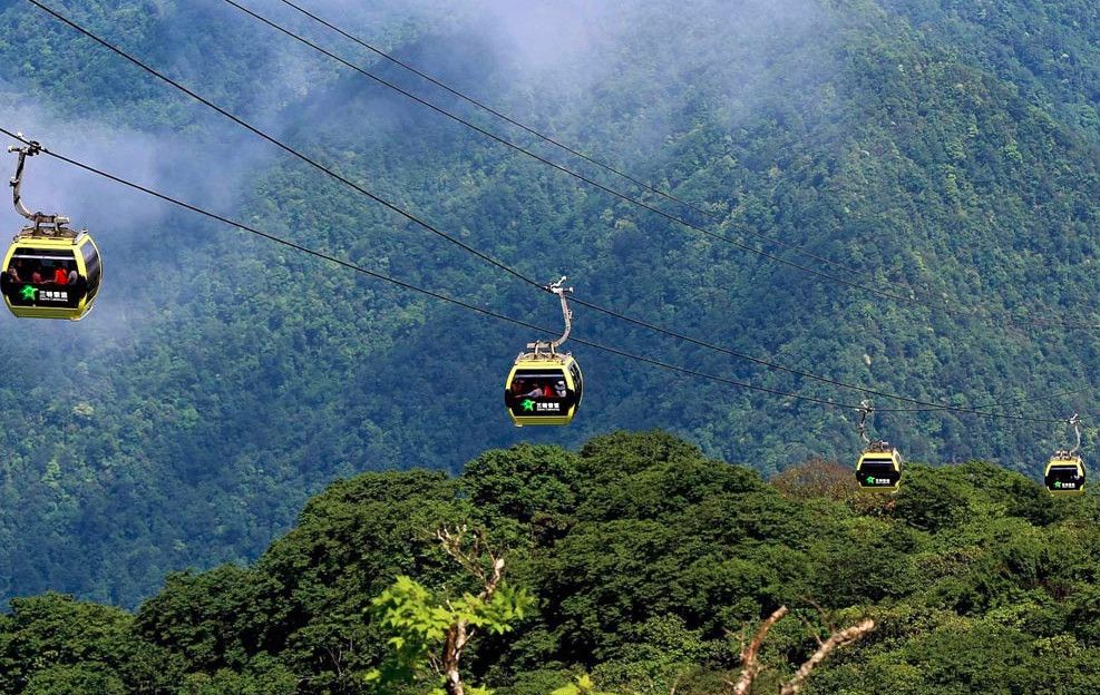 На вершину можно подняться и на канатной дороге - путешественники, избравшие этот путь, могут с высоты птичьего полёта полюбоваться бескрайним морем лесов и причудливыми скалами.