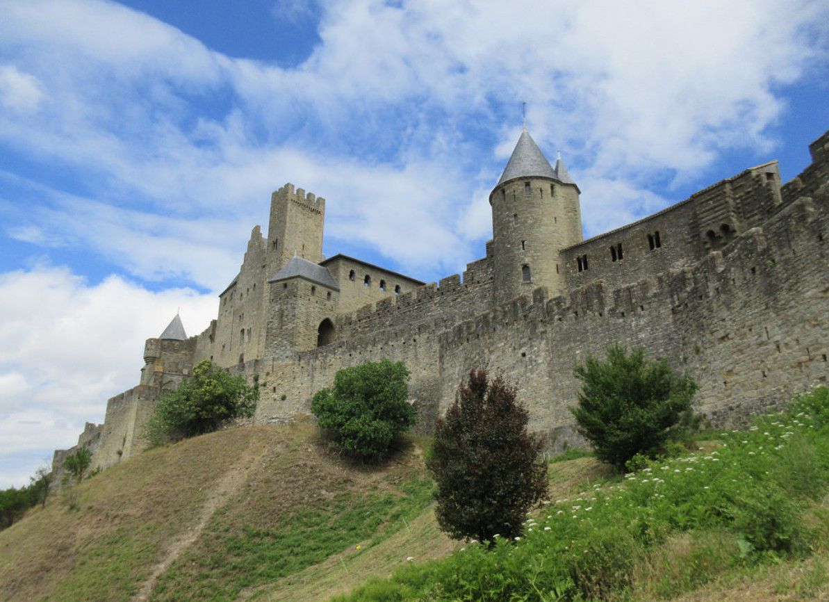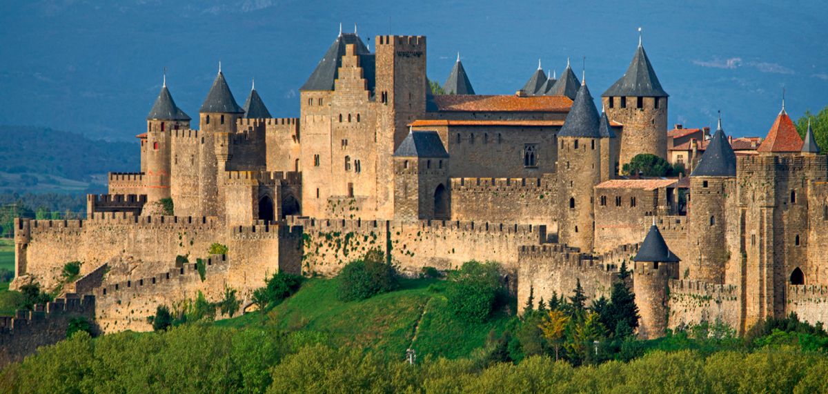 Город-крепость Каркасон - выдающийся пример средневекового укреплённого города, самая большая сохранившаяся средневековая крепость в Европе и объект Всемирного наследия ЮНЕСКО с 1997 года. Крепость Каркасон расположена во французском городе Каркасон, в департаменте Од региона Окситания. История Каркасона восходит к галло-римскому периоду - уже в 122 году до нашей эры на этом месте существовало римское укреплённое поселение, которое в 70 году до нашей эры получило статус привилегированного города. В середине V века, после падения Западной Римской империи, город был захвачен вестготами, а в 725 году - сарацинами. Но уже в 759 году город был завоёван франками и вошёл в состав Франкского королевства. Именно в это время возникла легенда о Каркассонской даме, объясняющая происхождение названия города - Каркасон. Согласно легенде, войска Карла Великого пять лет осаждали город, но, даже, после гибели его правителя Баллака взять город так и не смогли. Организацию его защиты взяла на себя вдова сарацинского правителя - легендарная дама Каркас. Когда в городе закончились запасы пищи и воды, она решила пойти на хитрость, приказав накормить последнюю оставшуюся в наличии свинью остатками собранного по всем закромам зерна, а затем - сбросить эту свинью со стен города. Карл Великий решил, что у осаждённых горожан склады забиты продовольствием, раз, даже, свиней они кормят пшеницей, и снял осаду. Увидев, что армия завоевателей уходит, дама Каркас приказала звонить во все колокола. Кто-то из франкских воинов воскликнул: "Carcas sonne!" (Каркас звонит!), отсюда и произошло название города - Carcassonne (Карксон). На самом же деле город был осаждён и завоёван Пипином Коротким, отцом Карла Великого, который на то время ещё был подростком. Образ же дамы Каркас, скорей всего, является фольклорным персонажем из песен средневековых трубадуров. Тем не менее, бюст спасительницы города установлен на одной из колонн подъёмного моста перед Нарбоннскими воротами (оригинал, датируемый XVI веком, хранится в Графском замке).