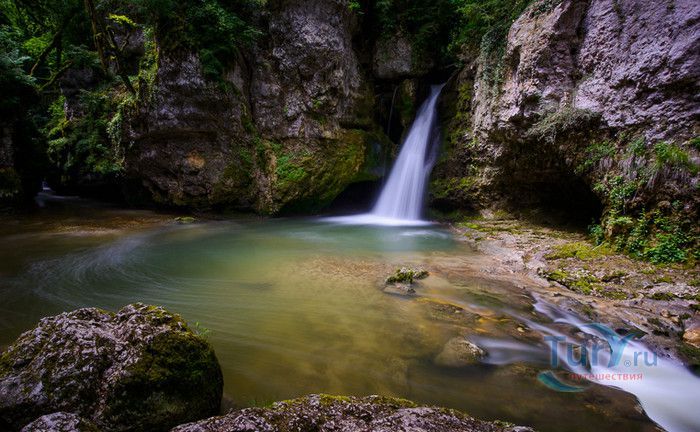 За водопадом можно понаблюдать не только снаружи, но и из туннеля, проделанного в горе.