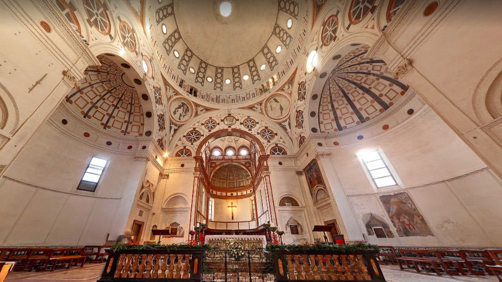 В 1492 году новый герцог Милана Лодовико Сфорца решил превратить церковь Санта-Мария-делле-Грацие в семейную усыпальницу рода Сфорца и перестроить храм в стиле Ренессанс. Таким образом, спустя всего 10 лет после завершения строительства церкви, она была разобрана, и 29 марта 1492 года было начато возведение нового храма. Предположительно, автором его проекта был архитектор Донато Браманте - один из основоположников архитектуры Высокого Возрождения, а руководителем строительства - Джованни Антонио Амадео. В результате перестройки внутренне пространство храма было значительно расширено, добавлены большие полукруглые апсиды, изящный барабанный купол, покоящийся на поясе из колонн, хоры и трапезная. Вдоль каждой из боковых стен церкви расположены по семь капелл, которые стали родовыми усыпальницами многих знатных семейств Милана, приглашавших для их украшения лучших художников и скульпторов того времени. Так, капелла капелла Святой Екатерины содержит скульптуры работы Антонелло да Мессина, в часовне Святого Иосифа можно увидеть картину XVI века Святое семейство, а в капелле Святого венца - фрески кисти Гауденцио Феррари. Среди всех часовен, несомненно, стоит выделить седьмую слева капеллу Санта-Мария-делле-Грацие (Девы Милосердия), существовавшую ещё до начало строительства церкви и, по сути, ставшей ядром всего монастырского комплекса.