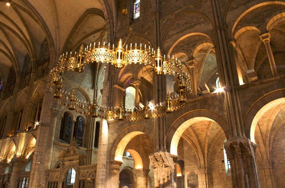 В XII столетии базилика снова была перестроена, в результате чего романская церковь приобрела элементы готического стиля. Романский неф церкви был сохранён, но построен просторный готический хор, окружённый деамбулаторием с венцом капелл из пяти часовен. Стены нефа и трансепта были подняты с помощью стрельчатых арок и накрыты сводчатым потолком, в базилике также появились витражные окна, благодаря чему внутреннее пространство церкви наполнилось солнечным светом. Интерьер базилики украсился великолепным мозаичным полом и огромной люстрой "Корона света" с 96 свечами - по свече на каждый год жизни Святого Ремигия. Также были установлены надгробные памятники членам королевской семьи из династии Каролингов, похороненным в базилике.