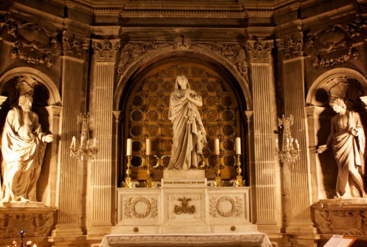 В 1859 году на колокольне собора была установлена шестиметровая позолоченная статуя Девы Марии. Всего же в соборе есть три статуи Девы Марии, остальные две можно увидеть во второй и третьей часовнях, расположенных на правой стороне собора.