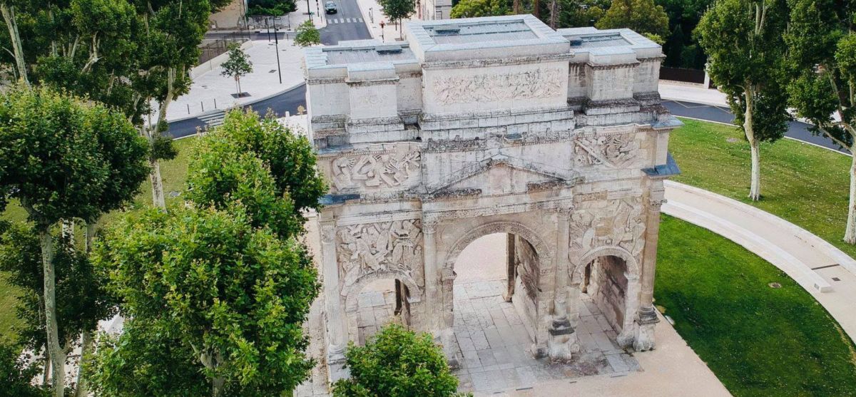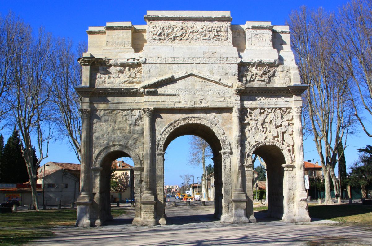 Триумфальная арка Оранжа была возведена в начале I века нашей эры в честь ветеранов Второго Галльского легиона, основавших город Араузион. По сути арка являлась парадными воротами Араузиона, построенными на Агриппиевой дороге, по которой из города Лугдунум (Лион) через Араузион (Оранж) можно было попасть в Рим и обратно. Сейчас этот путь повторяет Национальная дорога 7 (Route nationale 7).
