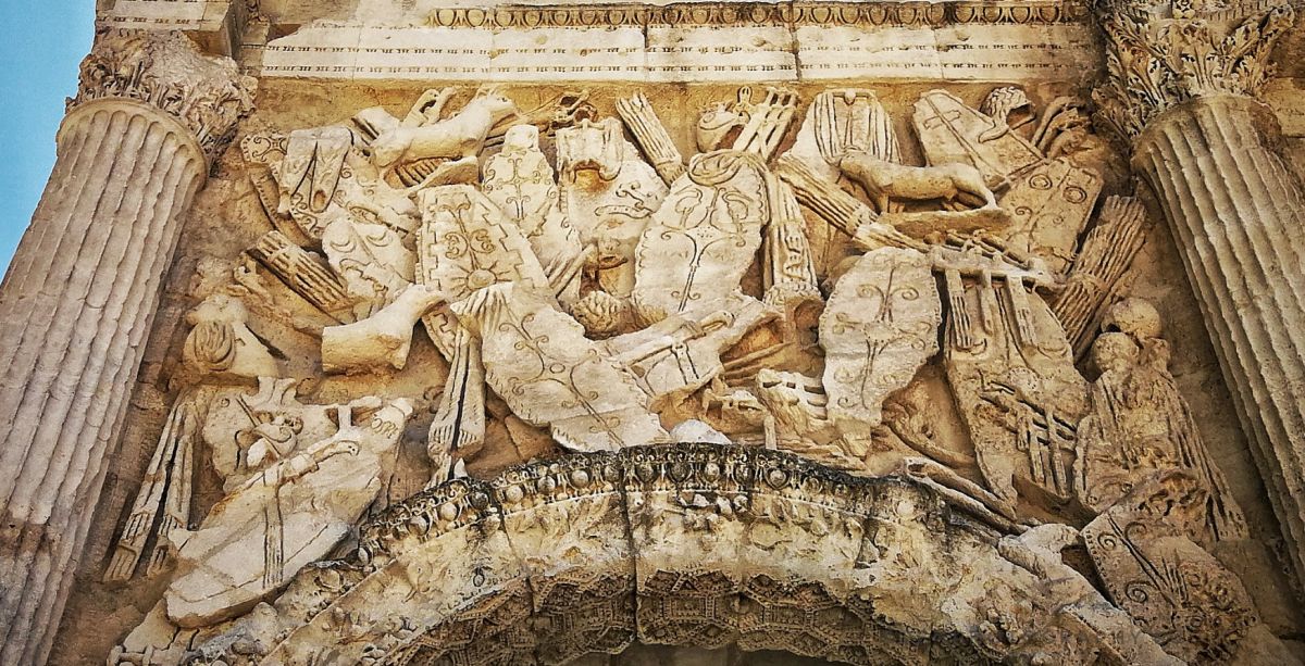 Позже арка была перестроена по указу императора Тиберия в честь "ослепительных" побед римского полководца Германика, одержанных им над германскими и галльскими племенами. Тогда же с обеих сторон арки, в нижней полосе фриза, в честь этого события была сделана надпись бронзовыми буквами, не сохранившаяся до наших дней.
