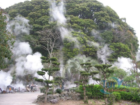 В районе города Беппу расположен один из самых крупных районов выхода подземных термальных вод на планете. По подсчётам, его горячие источники и гейзеры выбрасыавают более 56600 куб. м воды в день, что превратило город в крупный туристический центр, где посетители принимают горячие песчанные ванны или лечебные, насыщенные минеральными солями воды. Сейчас на базе более чем 3,5 тысяч местных горячих источников открыто множество превосходных бальнеологических курортов, а в свободное время можно посетить уникальные "кипящие озера" Чиноике Дзигоку и Уми Дзигоку, а также гейзер Татсумаки Дзигоку или местный зоопарк, понаблюдать за поведением "снежных макак", также обожающих принимать горячие ванны. В суровые зимние холода в Южной Японии можно наблюдать весьма любопытное зрелище. Во время снегопадов Маленькие обезьянки-макаки ищут тепла в согретой вулканической деятельностью воде, погрузившись в неё по шею, в то время как снег покрывает их головы. Однако, вылезая из воды, обезьянки быстро теряют тепло в ледяном воздухе и, в результате, с мокрой шерстью мёрзнут ещё больше, чем если бы не поддались соблазну принять горячую ванну. Но обезьянки достаточно изобретательны и, похоже выработали "систему дежурств", отправляя одного-двух посыльных за едой, между тем как остальные ждут в тепле.