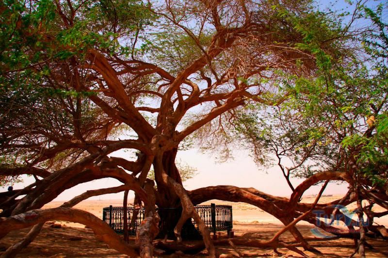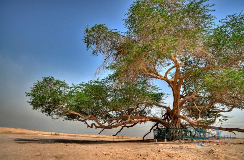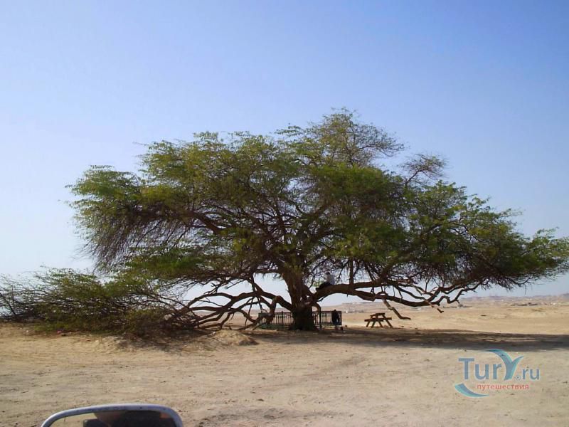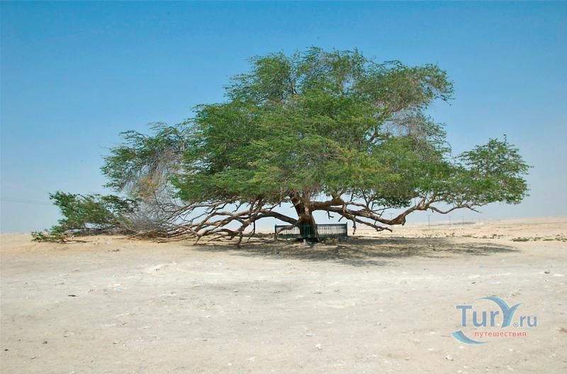 Одной из известных достопримечательностей самого маленького арабского государства Бахрейна является одинокое дерево акации. Арабы его называют Шаджарат-аль-Хайят, что в переводе означает «Дерево жизни». Дерево является одной из самых интригующих достопримечательностей не только Бахрейна, но и всей Земли. Оно растет вот уже 400 лет в пустыне, на холме высотой около 10 метров (самой высокой точке Бахрейна), где нет ни поверхностных, ни грунтовых источников воды. Среди местных жителей тайна его выживания в пустыне сделала дерево легендой. Шаджарат-аль-Хайят многие считают единственно выжившим деревом Райских садов Эдема, которые, согласно библейским преданиям, располагались в Бахрейне. Существует несколько версий жизнеспособности чуда-дерева. По одной из них корни дерева питает подземная река, но никому еще не удалось её найти. По другой версии, особые бактерии питают дерево влагой, добытой из песка. По третьей - корни дерева уходят очень глубоко под землю, где достигают неизвестных источников воды, но доказать ни одну из версий пока не удалось. По мнению местных бедуинов, дерево на жизнь благословил мистический Бог Энки. Но все это версии и предположения. Разгадки нет, а дерево продолжает расти в условиях полного отсутствия всяких шансов на выживание. Для жителей Бахрейна это дерево, окутанное тайной, олицетворяет саму жизнь. Многие из них хотят ощутить причастность к этой тайне и прикоснуться к Дереву жизни как к символу выживания и победы над обстоятельствами.