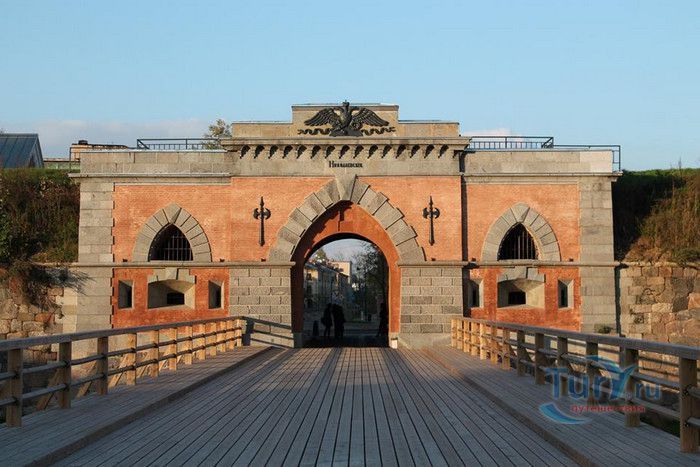 Строительство Даугавпилсской (Динабургской) крепости в городе Даугавпилс, на берегу реки Даугава, было начато в 1810 году по указу российского императора Александра I. Крепость должна была прикрывать юго-западные подступы к Петербургу. В её проектировании участвовал известный русский архитектор Стасов, а руководил работами военный инженер генерал Гекель. На строительных работах в 1810 году были задействованы 10 000, а в 1811 году - 15 000 солдат и 2 000 мастеровых из Витебской губернии. Для постройки валов камни привозили с острова Сааремаа. Высота валов достигла 11 метров, вдоль них простирался ров глубиной 9 метров, наполненный водой. Крепость предполагалось оснастить 595 крепостными орудиями, состав гарнизона должен был насчитывать 4 500 солдат в мирное время и 7 000 - в военное. В 1812 году, к началу Отечественной войны, была выполнена только часть работ. По приказу Наполеона на крепость был выдвинут корпус маршала Удино, который насчитывал 32 000 пехотинцев и 2 400 кавалеристов. Гарнизон крепости состоял из 2 500 солдат, на вооружении которых было 80 пушек. Тем не менее, французы не смогли взять крепость, гарнизон стойко защищался, Удино потерял большое количество своих солдат, многие были ранены. Попытка французской армии занять Динабург была отражена, а все попытки продвинуться в Петербургском направлении заблокированы. В память о мужестве защитников Даугавпилсской крепости позже был сооружен памятник-фонтан "Слава русского оружия", состоящий из трёх чугунных крупнокалиберных пушек, его установили в парке крепости. В 1813 году строительные работы были возобновлены. Значительную часть зданий крепости составляли казематы, предназначенные для хранения оружия, пороховых и продовольственных запасов. В казематах были оборудованы гарнизонные казармы и пути сообщения. В 1821 – 1822 годах началось строительство четырёх монументальных ворот крепости, получивших названия Александровских, Константиновских, Николаевских и Михайловских, в честь императора Александра I и его братьев. Николаевские ворота получили статус парадных ворот. На площади 150 гектаров разместились солдатские казармы, жилые дома командного состава и обывателей, госпиталь на 500 коек, здание штаба, дом коменданта, инженерный и артиллерийский арсеналы. Протяженность главного вала составила 2 435 метров, высота - 8 метров, толщина - 22 метра. Все здания были построены в стиле ампир, кроме Николаевских ворот и водонапорной башни, построенных в готическом стиле. 21 мая 1833 года в присутствии императора Николая I состоялось торжественное открытие крепости и церемония освящения, но строительство зданий и укреплений продолжалось вплоть до 1878 года. Во время Второй мировой войны, с июня 1941 года по июль 1944 года, Даугавпилс находился под фашисткой оккупацией. В зданиях крепости нацисты устроили еврейское гетто и лагерь для советских военнопленных Шталаг-340. 27 июля 1944 года в Даугавпилс вошли части Красной Армии. До 1993 года на территории крепости размещалось Даугавпилсское высшее военное авиационно-инженерное училище имени Яна Фабрициуса. С 2009 года в крепости проводятся восстановительные и ремонтные работы. В апреле 2011 года после реставрации открыта водоподъёмная башня - первое отреставрированное здание за более чем 200-летнюю историю Даугавпилсской крепости. В помещении военного госпиталя в будущем пла