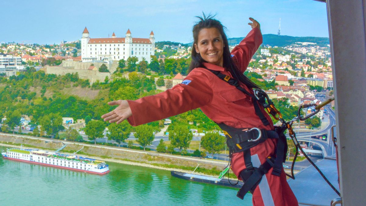 Skywalk - представляет круговой обзор по окружности смотровой площадки НЛО на мосту SNP в Братиславе на высоте 85 метров в сопровождении квалифицированного инструктора.