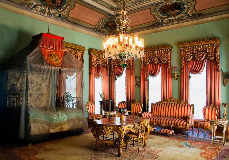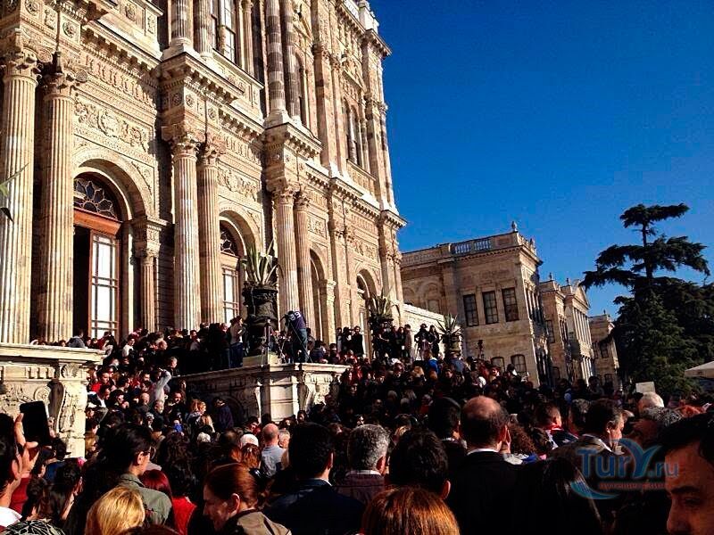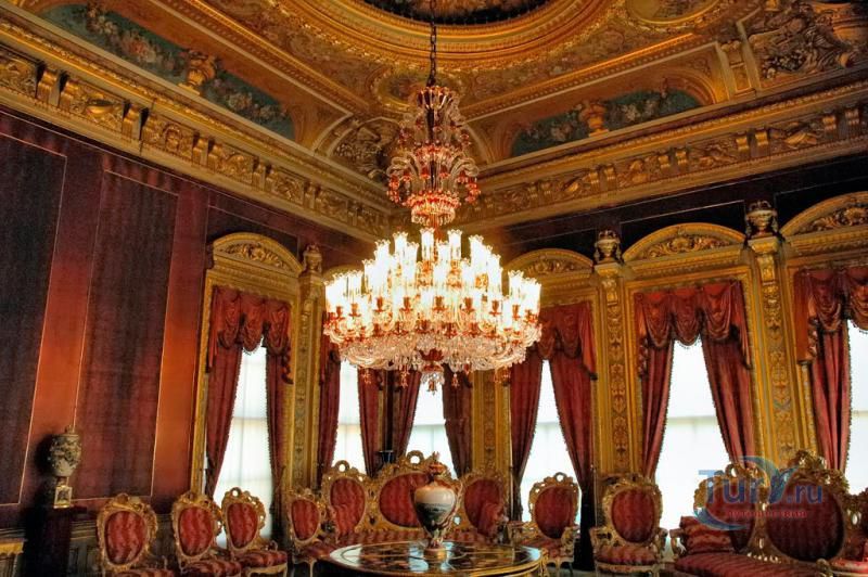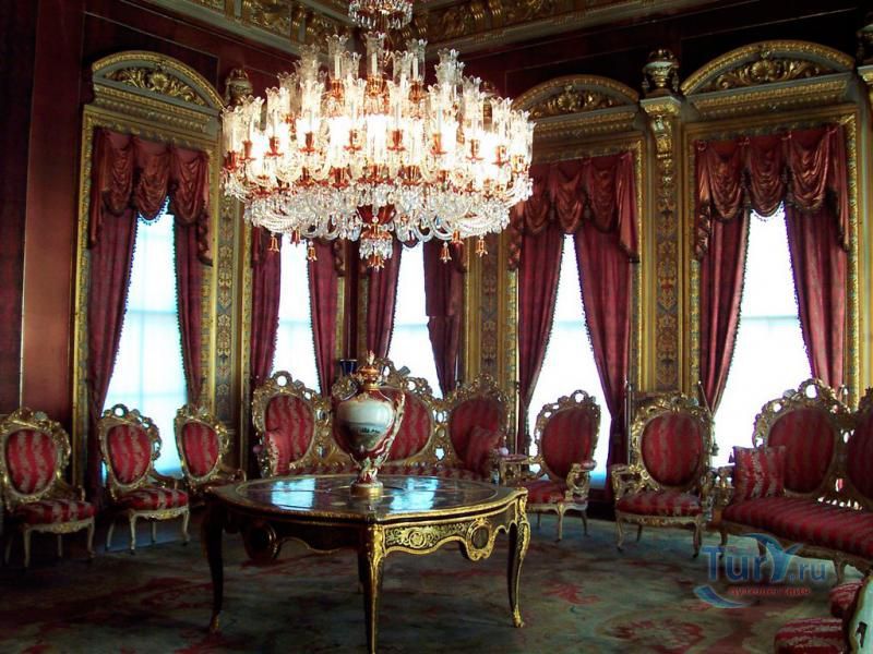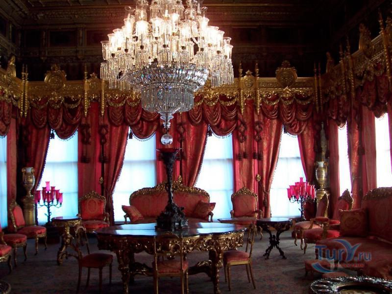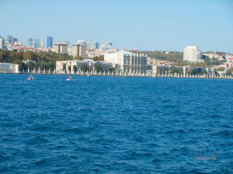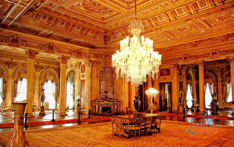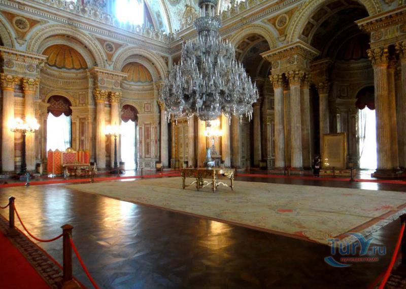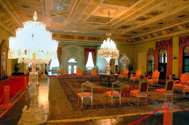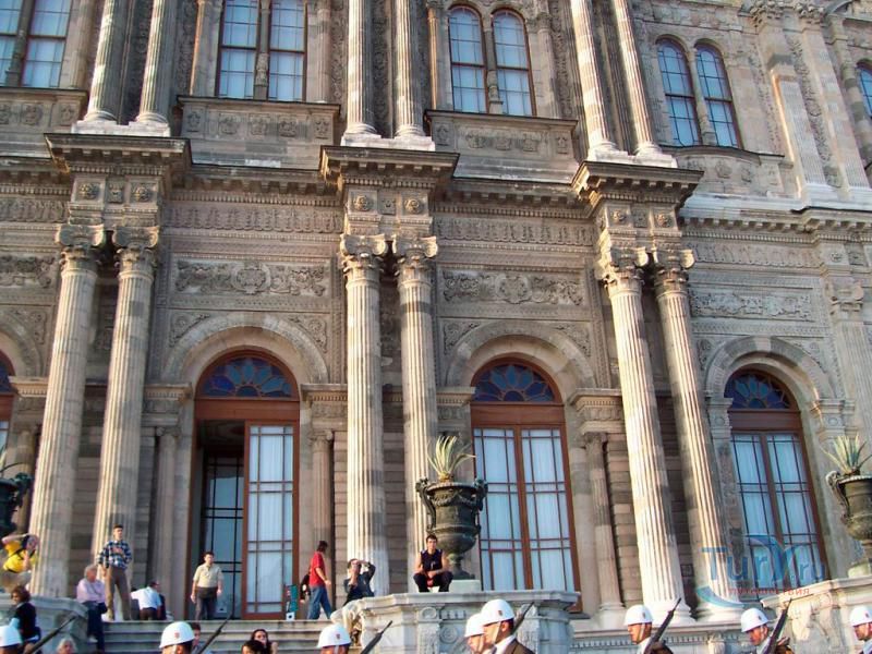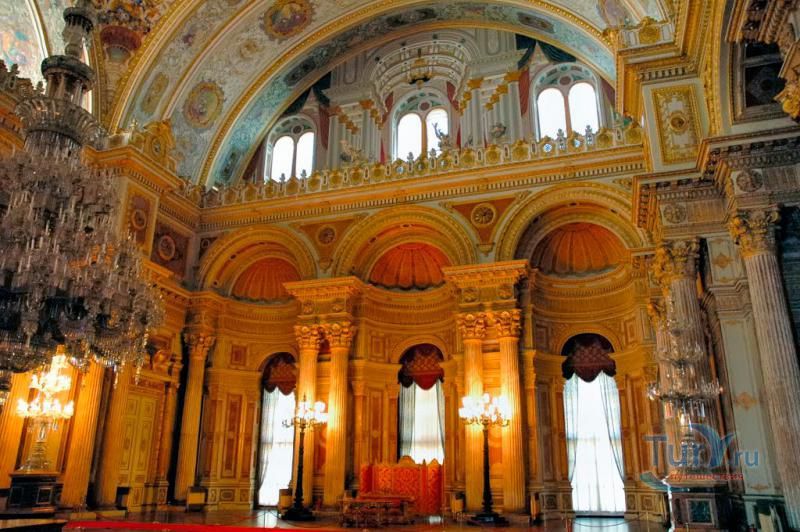 Долмабахче́ - дворец османских султанов в Стамбуле, расположенный в живописном месте на европейском берегу Босфора. Строился дворец с 1842 по 1853 годы. Причина его появления - каприз правителя Турции султана Абдул-Междида I: прогрессивный монарх тяготился громоздким и тяжёлым архитектурным наследием предшественников - дворцовым комплексом Топкапы, и пожелал иметь собственный дворец, способный соперничать в изысканности с европейскими резиденциями XVIII века. Султану этот дерзкий замысел удался с большим успехом - блестящий стиль барокко обрёл на берегах Босфора особый шарм. До XVII века в этом месте был неглубокий залив, где базировался флот. В середине XVII века залив засыпали и организовали прекрасный парк. С тех пор эту местность стали назвать Долмабахче – «насыпной сад». Чуть позже на этом месте появился деревянный прибрежный дворец Бешикташ. В 1843 году деревянный дворец снесли и стали строить огромный дворцовый комплекс. Дворец Долмабахче самый «нетурецкий» дворец в Стамбуле. В качестве архитекторов выступали армяне из семейства Бальянов. Среди основных достопримечательностей - люстра из богемского стекла весом почти в пять тонн, подаренная королевой Викторией, и собрание картин Айвазовского, которые художник исполнил по заказу султана. На украшение Хрустальной лестницы и прочих интерьеров ушло 14 тонн золота, а общая стоимость строительства превысила пять миллионов золотых фунтов. Большой дворец Долмабахче состоит из трёх частей: Государственных апартаментов, Церемониального зала и Гарема. В первых залах султан осуществлял функции главы государства, комнаты гарема предназначались для личной жизни правителя, а Церемониальный зал служил подобием связующего звена между двумя сторонами одной личности. Всего же во дворце 285 комнат и 44 зала приёмов, что красноречиво свидетельствует о размахе Османской империи и замыслов Абдул-Меджида. За несколько десятилетий дворцовый комплекс, первоначально скромный по размерам, разросся до того, что занял 45 тыс. кв. метров. Помимо самого дворца в дворцовом комплексе были построены вспомогательные помещения: мельница, конюшня, птичий двор, кондитерский цех, кухня. Они располагаются через дорогу от дворца, чтобы запах не мешал султану. В 1895 году возвели башню с часами, высота которой 27 метров. Часы на башне идут до сих пор. Частью дворцового комплекса была и мечеть Долмабахче, построенная в стиле барокко. На территорию дворцового комплекса Долмабахче, фасад которого растянулся на 600 метров вдоль моря, ведут 12 ворот. Возле входа в ворота Сокровищ - почетный караул, смена которого происходит каждый час. В числе заслуживающих самого пристального внимания зданий дворцового комплекса Долмабахче - изящный персиковый павильон Айналыкавак с резными наличниками; нереальной красоты сказочные павильоны Ихламур; шале-дворец Йылдыз; павильоны Маслак и Бейкоз, роскошный летний дворец Бейлербей, а также морской особняк Флория Ататюрк и дом Ялова Ататюрк. Церемония открытия дворца была приурочена к окончанию Крымской войны 1856 года. С тех пор дворец Долмабахче стал официальной резиденцией султанов. Всего здесь проживало шесть турецких султанов. После падения монархии и до 1938 года в нем жил и работал основатель Турецкой республики и первый её президент Ататюрк. После его смерти дворец стал музеем вп