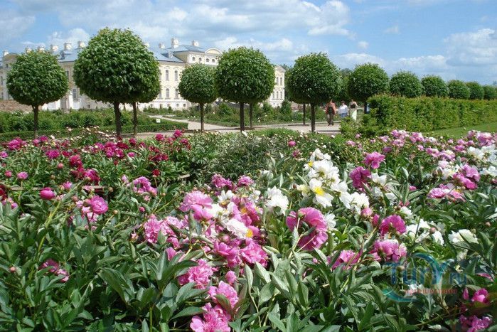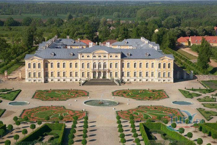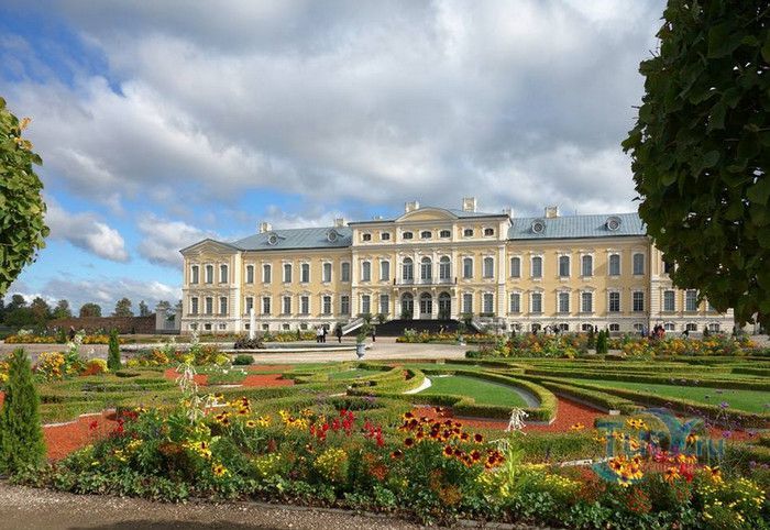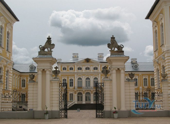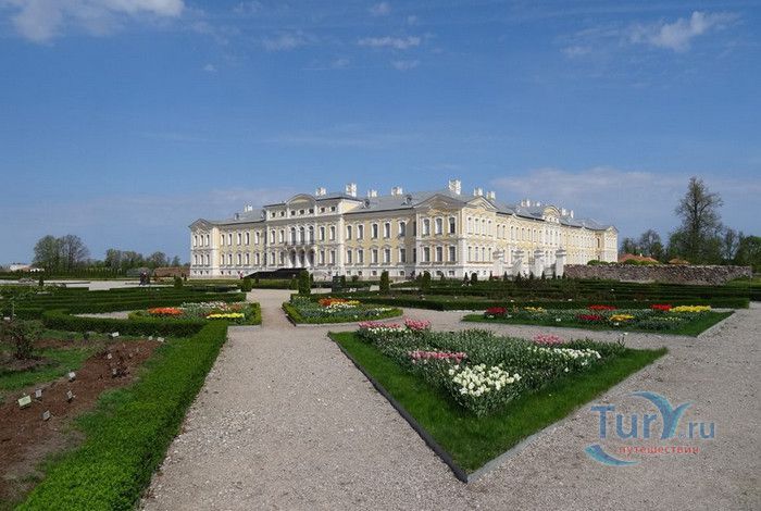 Рундальский Дворец расположен на территории Земгальской равнины, в живописной сельской местности. Дворец является одним из самых значимых архитектурных памятников в стиле барокко в Латвии. Рундальский дворцово-парковый ансамбль включает в себя дворец, ландшафтный парк, конюшни и служебные постройки. Поместье в 1735 году было приобретено Курляндским герцогом Эрнстом Иоганном Бироном, фаворитом российской императрицы Анны Иоанновны. Для возведения дворца был приглашён известный итальянский архитектор Франческо Бартоломео Растрелли. Проект дворца был готов в январе 1736 года, а в мае этого же года был заложен первый камень в фундамент здания. В 1740 году строительство было прервано из-за ссылки Бирона после дворцового переворота в России, в результате которого императрицей стала Елизавета I. В 1762 году бывший регент был помилован, и работы по возведению дворца возобновились. Руководить строительством продолжил Растрелли, оформление интерьеров было поручено скульптору Иоганну Михаэлю Граффу и художникам Франческо Мартини и Карло Цуккини. Строительство было завершено в 1768 году. После смерти Бирона в 1772 году, замок был унаследован его вдовой Бенигной Готлиб, а после присоединения в 1795 году Курляндии и Земгале к Российской империи, владелицей поместья формально становится Екатерина II. Рундальский Дворец был пожалован императрицей Валериану Зубову, а после его смерти в 1804 году, перешёл к последнему фавориту Екатерины II - Платону Зубову. Во время Отечественной войны 1812 года замок был варварски разграблен французскими солдатами: разбиты зеркала, уничтожены картины, мебель, лепнина на потолках, сняты со стен шёлковые обои, украдена богатая библиотека, подаренная Екатериной II. В помещении дворца были устроены лазарет и казарма. В 1813 году графом Платоном Зубовым помещения были отремонтированы, однако, многие элементы прежнего интерьера не сохранились или были заменены на модный в то время стиль ампир. После смерти графа в 1822 году, поместье на долгие годы переходит к графам Шуваловым. При Шуваловых во дворце были проведены большие ремонтные работы, восстановлены лепнина и паркет в Белом зале, потолочные фрески - в Золотом зале, завезены роскошная мебель и картины. Дворцовый парк, первоначальный проект которого также был разработан Растрелли, практически не изменился. Со временем был создан пруд, высажены каштановые и тополиные аллеи, обновлены фруктовые сады и оранжереи. Во время Первой мировой войны Рундальский Дворец сильно пострадал. В 1923 году он был частично восстановлен, и с этого времени в нём размещались приходская школа, дом инвалидов, музей и даже зернохранилище. 2 января 1972 году был создан Рундальский дворец-музей, начинается восстановление всего дворцово-паркового ансамбля в том виде, в каком он был во второй половине XVIII столетия. Реставрация замка была завершена в 2014 году. Дворцовый комплекс состоит из 16 зданий с общей площадью 14 250 квадратных метров, расположенных на территории площадью 72 гектара. Дворец имеет 138 комнат, в 43 из них восстановлены исторические интерьеры. В их число входят Золотой (тронный) зал, Белый (банкетный) зал, Большая и Малая галереи, Фарфоровый кабинет, Овальный буфет, парадные и личные апартаменты герцога и герцогини. Во дворце работают постоянные и временные экспозиции, проводятся экскурсии по 