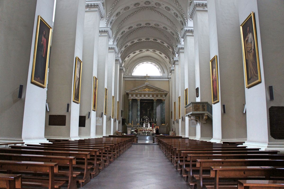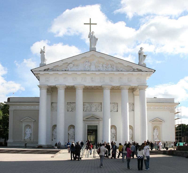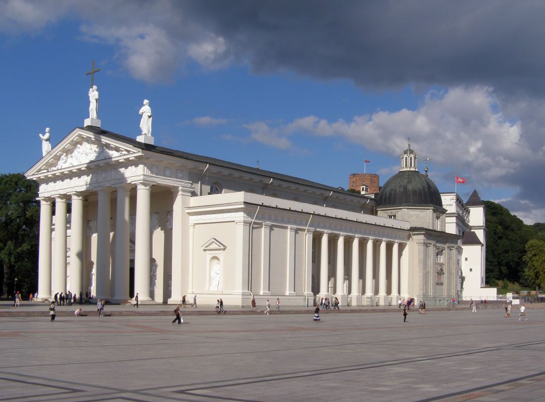 Кафедральный собор-базилика Святых Станислава и Владислава – это самый важный католический храм во всей стране, место великих христианских, народных и государственных торжеств. Статус базилики кафедральный собор получил в 1922 году. Слово «базилика» означает «королевский». Это наивысшая категория храмов, которая присваивается Папой Римским лишь особым костёлам. В подземельях Кафедрального Собора погребались выдающиеся люди Великого Княжества Литовского: вельможи, епископы, князья. В королевском мавзолее под часовней святого Казимира покоится Великий князь Литовский и Король Польский Александр. Это единственный правитель Польши и Литвы, похороненный в Вильнюсе. В подземельях кафедрального Собора похоронен внук Гедиминаса и самый могущественный правитель Литвы Витаутас Великий со своей супругой Анной. Здесь также покоятся две королевы, жены Сигизмунда Августа: Елизавета Габсбургская и Барбора Радвилайте, которую иногда называют красивейшей женщиной Европы своего времени. Каменные стены Кафедрального собора приютили и урну с сердцем Короля Владислава Вазы. В подземельях сохранились древнейшая каменная кладка святилищ XIII-XV веков и древнейшая литовская фреска, написанная в XVI веке.
