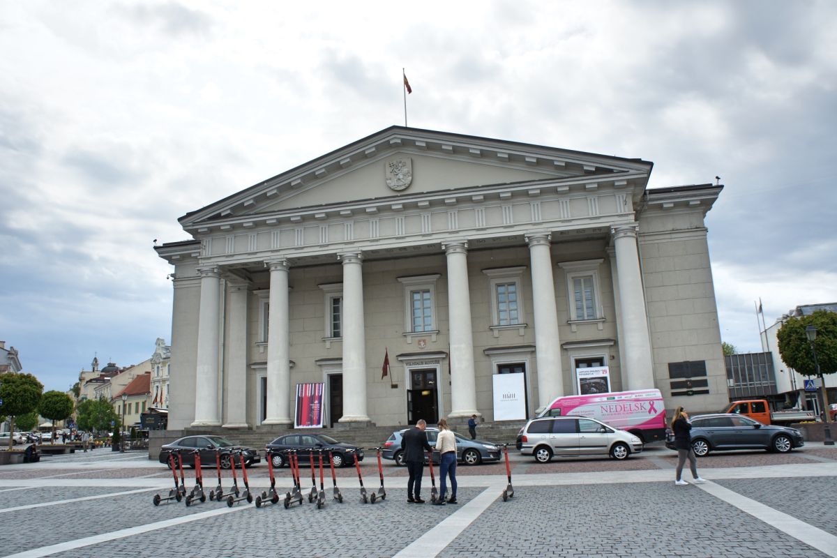 Здание ратуши сначала было готическим, но неоднократно изменялось. В последний раз оно было перестроено архитектором Лауринасом Гуцявичюсом в конце XVIII века. Мастер придал ратуше характерный для классицизма вид. В XIX веке ратуша была превращена в городской театр, в котором премьерной постановкой собственной оперы “Галька” дирижировал знаменитый польский композитор Станислав Монюшко.