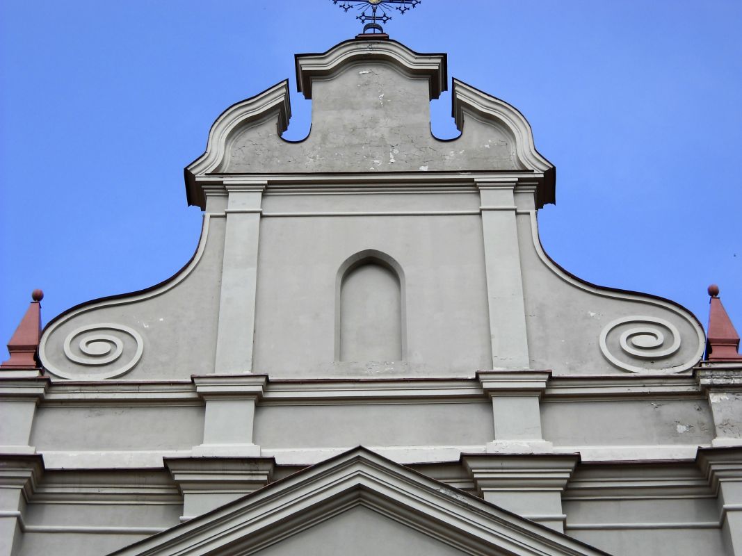 Основной фасад церкви выполнен в стиле пышного раннего барокко.
