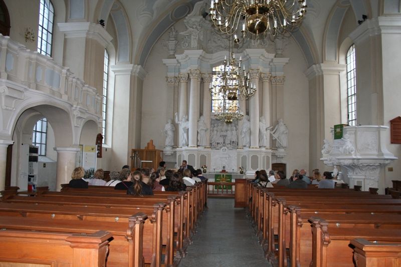 Самый первый костел евангелистов лютеран (кирха), находящаяся рядом с Немецкой улицей, был построен в середине ХVI в. Это была сакральная составляющая немецкой части города. Он был построен по инициативе литовского канцлера Миколоюса Радзивилы Черного.